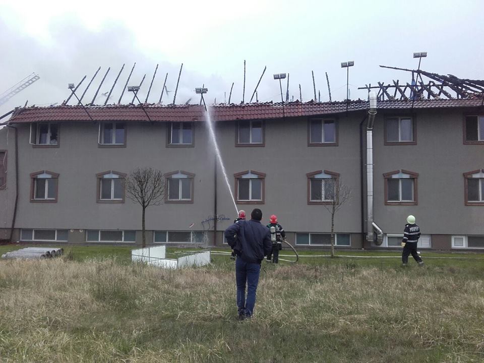 12 persoane au fost evacuate dintr-un hotel al cărui acoperiş a ars, în oraşul Ineu, din judeţul Arad.