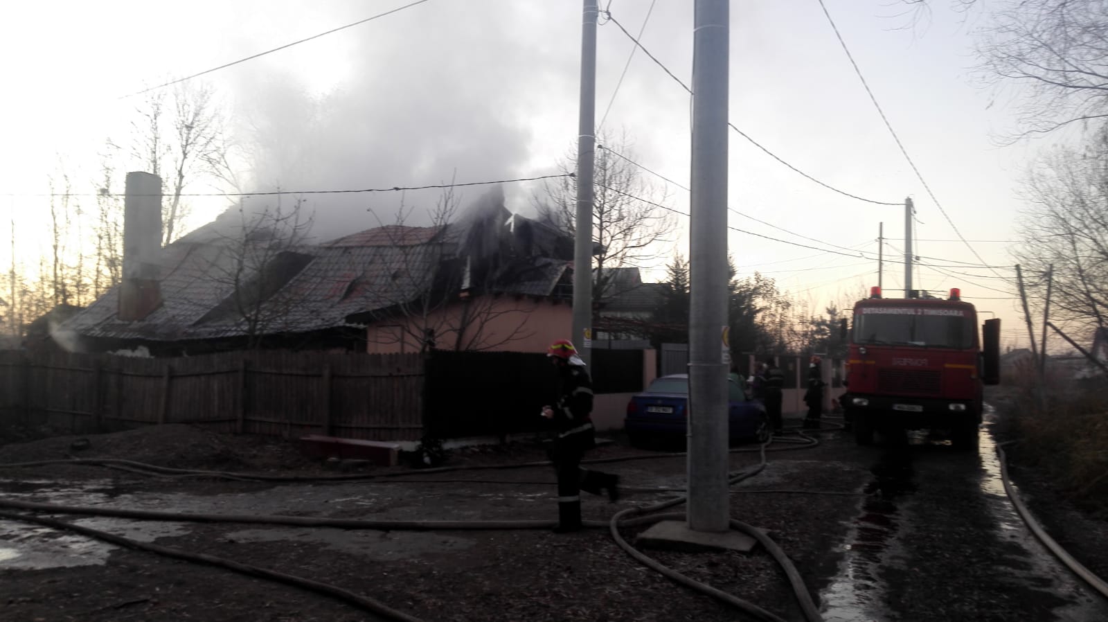 Pompierii de la Inspectoratul pentru Situații de Urgență Timiș au fost solicitați, în jurul orei 3:50, să intervină la lichidarea unui incendiu la o casă din Sânmihaiu Român.