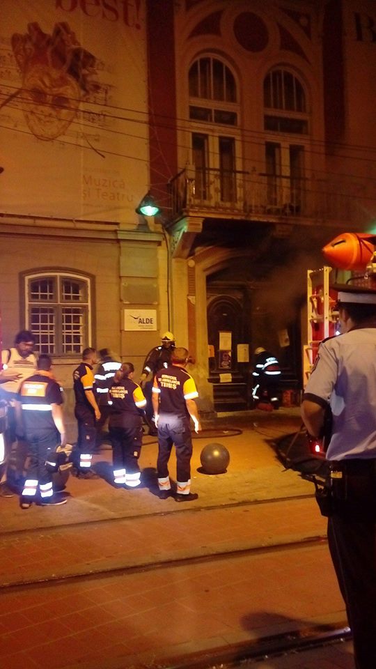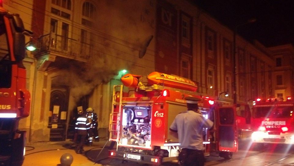 Pompierii de la Inspectoratul pentru Situații de Urgență Timiș au fost chemați să intervină la un incendiu izbucnit în clădirea Facultății de Muzică din Piața Libertății. Incendiul s-a produs la un panou electric care se află la intrare, în spatele unei uși masive din lemn. Pompierii au aflat că în clădire se află cinci persoane.