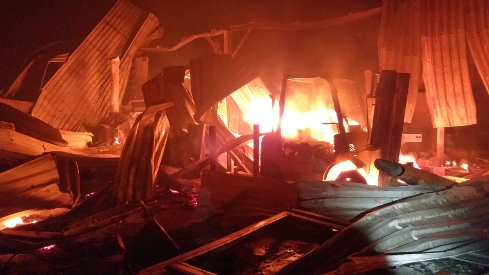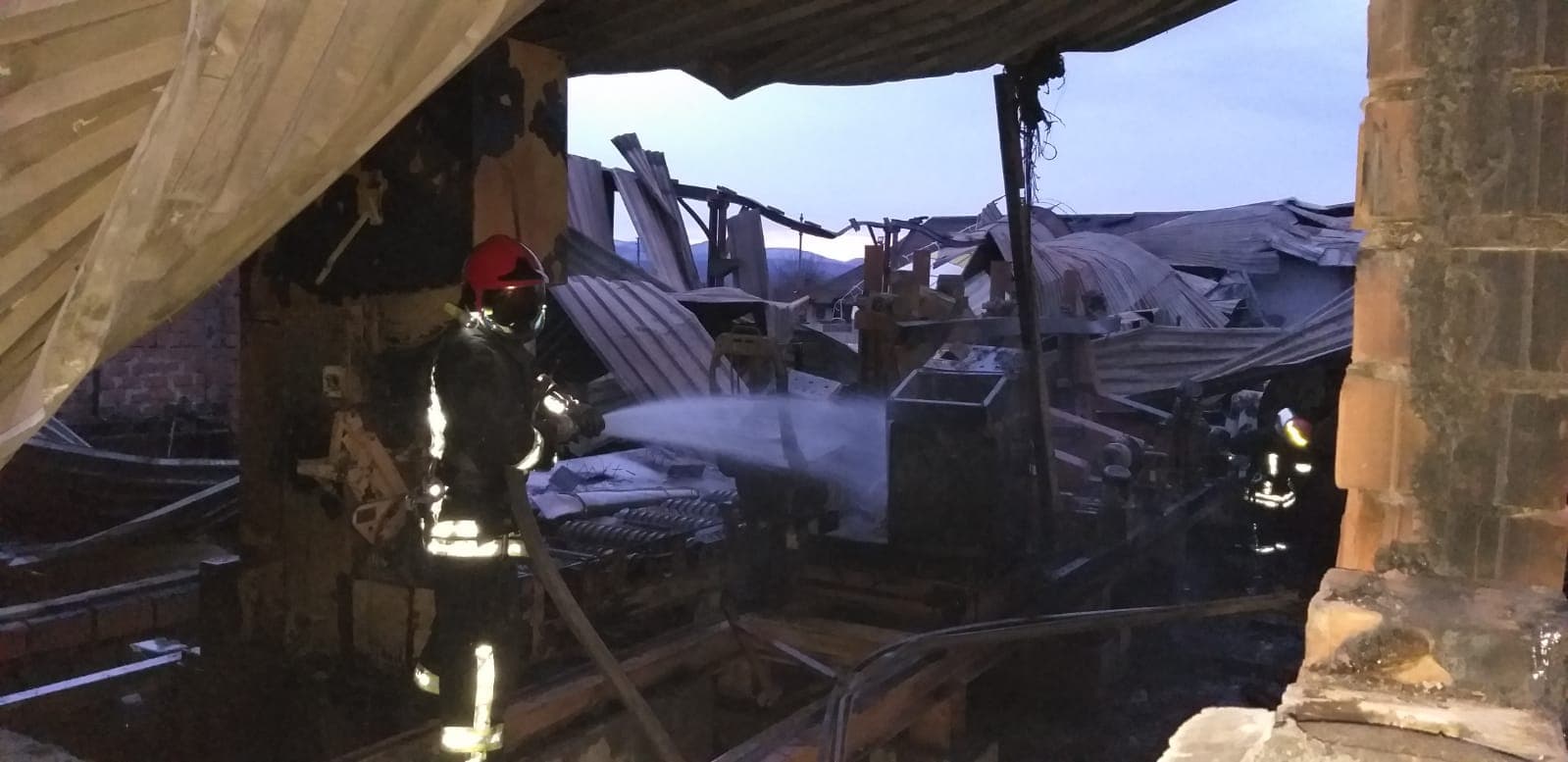 Au ars hala, un birou, o suprafaţă de aproximativ 600 mp, dar şi 6 metri cubi de cherestea, o linie cu mai multe utilaje de prelucrare a lemnului subţire, un grup de prelucrare lemn gros, gater, o linie paleţi, un autostivuitor şi alte utilaje. S-au mai deteriorat acoperişul, structura metalică şi un siloz rumeguş semifabricate.