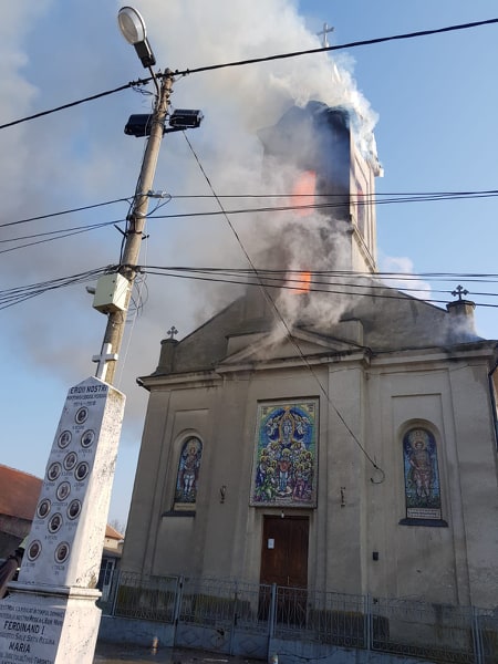 FOTO/ Incendiu puternic la biserica din Șuștra