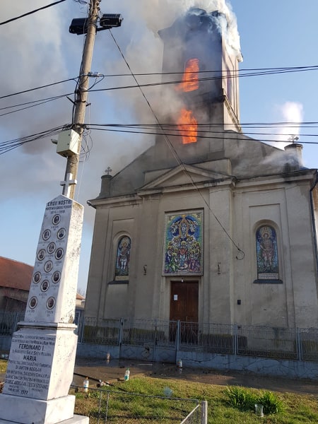 În momentul în care biserica a fost cuprinsă de flăcări nicio persoană nu se afla în interior.
