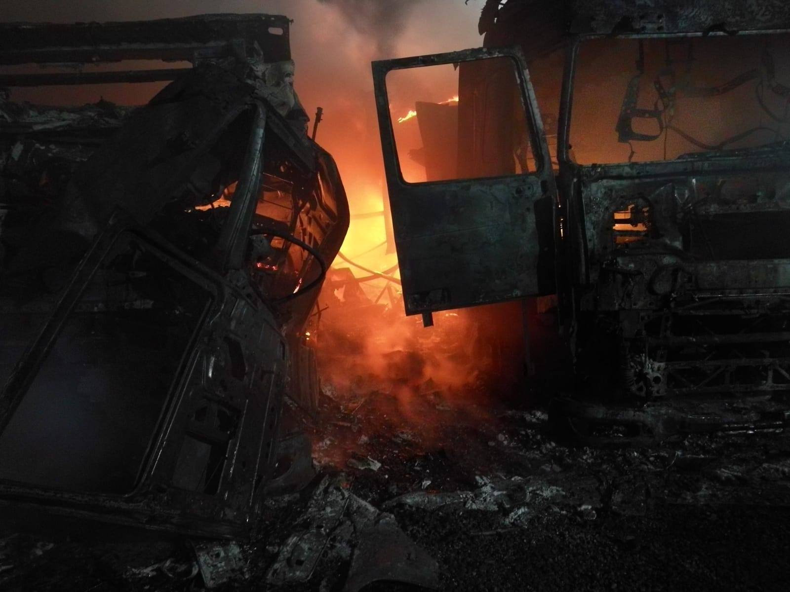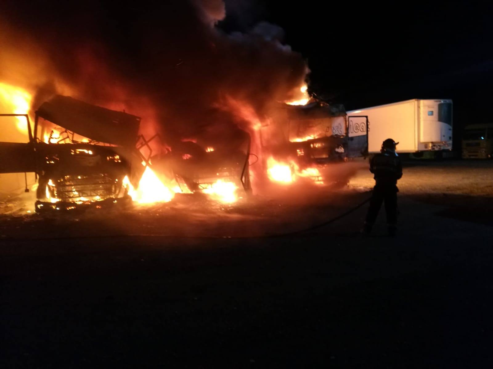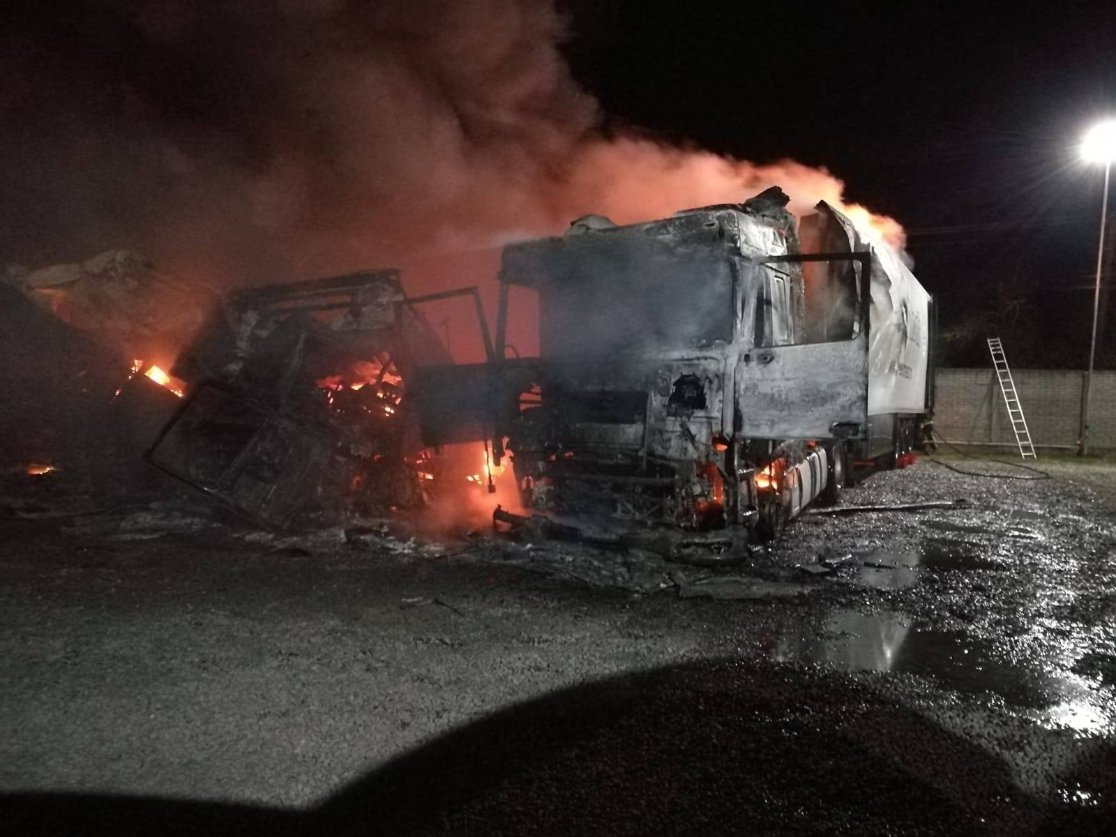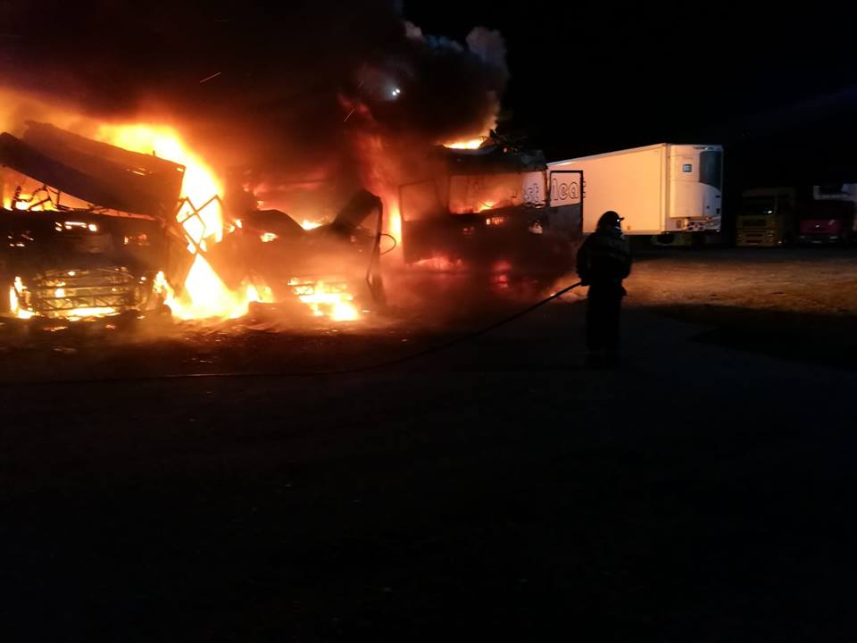 “La momentul echipajelor sosirii ardeau generalizat, violent, trei camioane, toate parcate unul lângă celălalt, la mică distanță, de circa 50 de centimetri, și cu posibilitate de propagare la alte camioane. S-a acționat pentru stingere aproximativ o oră. Cauza probabilă a incendiului este defecțiune electrică. Amploarea incendiului a fost favorizată de anunțul târziu al acestuia. Parcarea nu beneficia de paza sau camere de supraveghere. Încendiul a fost anunțat în momentul în care două din cele trei camioane ardeau generalizat. Douăautocamioane au ars în proporție de 100%, iar cel de-ale treilea, în proporție de 60%”, spune purtătorul de cuvânt al Inspectoratului pentru Situații de Urgență Arad, maior George Pleșca