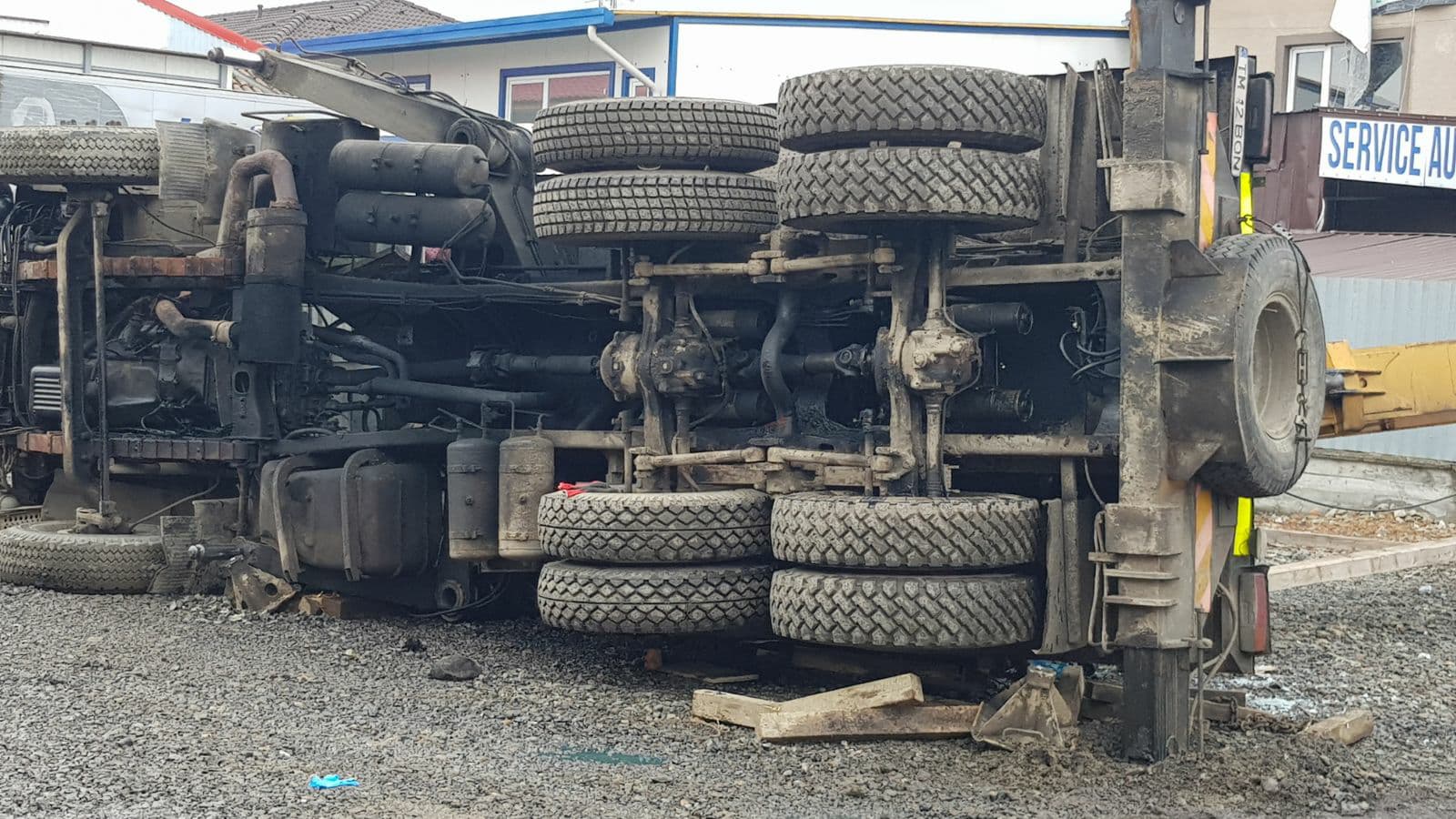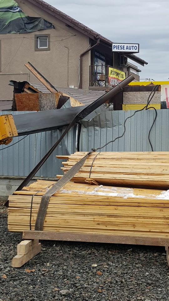 FOTO/ Macara prăbuşită peste o construcţie în Dumbrăviţa