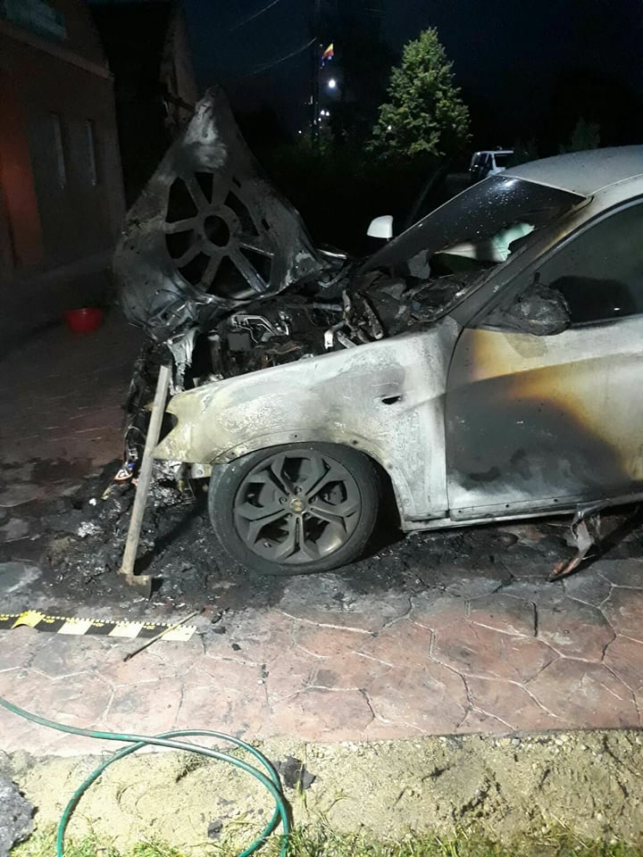 FOTO/ Mășină distrusă de flăcări în Timiș