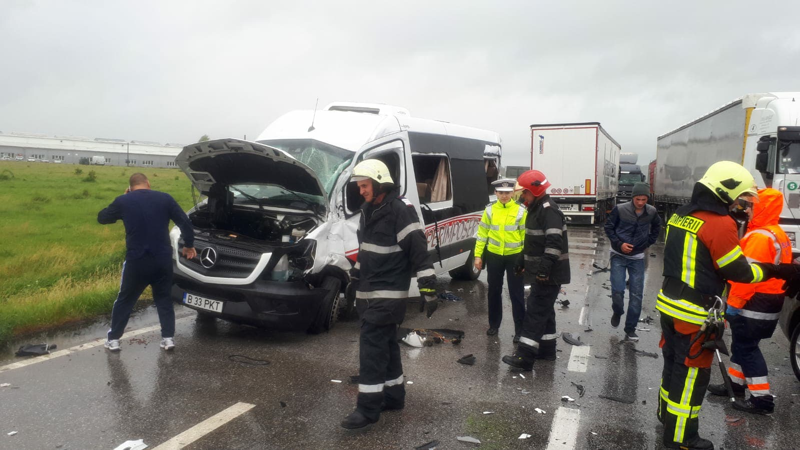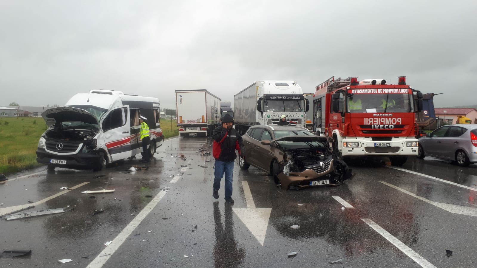 Pompierii de la Inspectoratul pentru Situații de Urgență Timiș au fost chemați să intervină la un accident produs pe centura Lugojului. În accident au fost implicate un autoturism în care se afla doar șoferul și un microbuz în care se aflau, pe lângă șofer, două cadre didactice și 17 elevi.