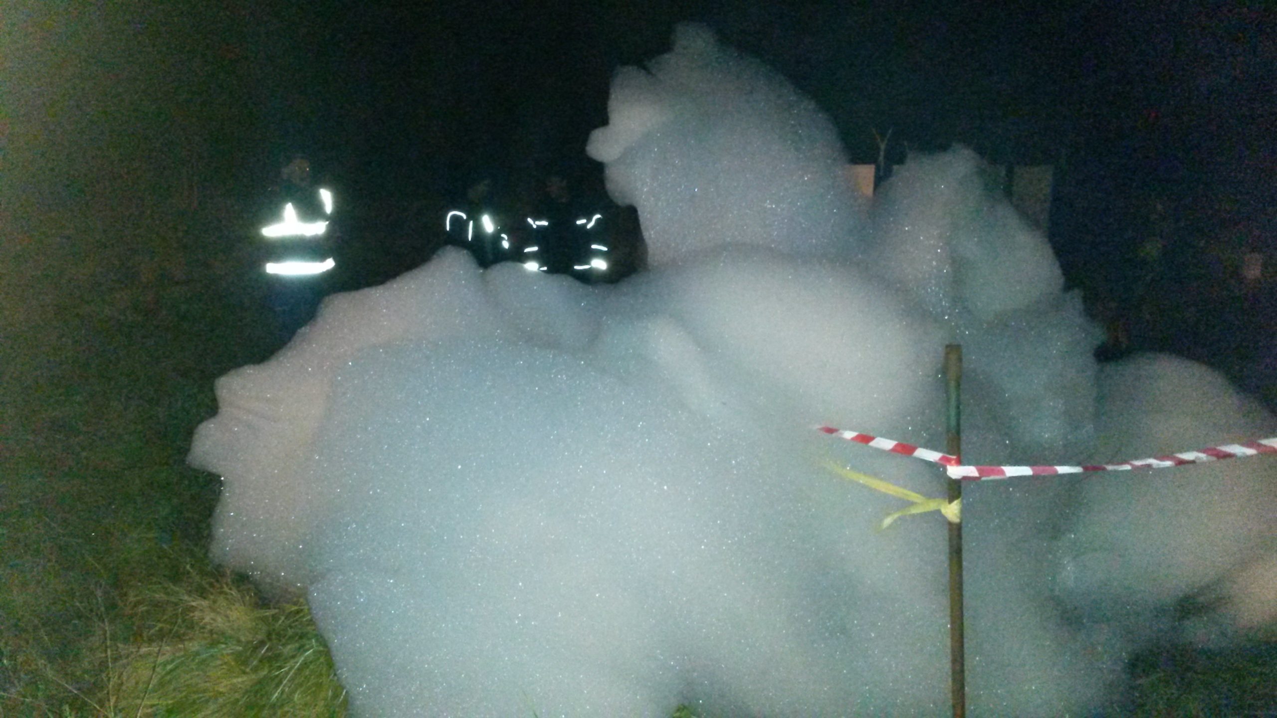 La fața locului, oamenii au putut vedea cum apare o spumă despre care pompierii au precizat că reprezintă o reacție a gazelor în contact cu aerul și cu apa din sol.