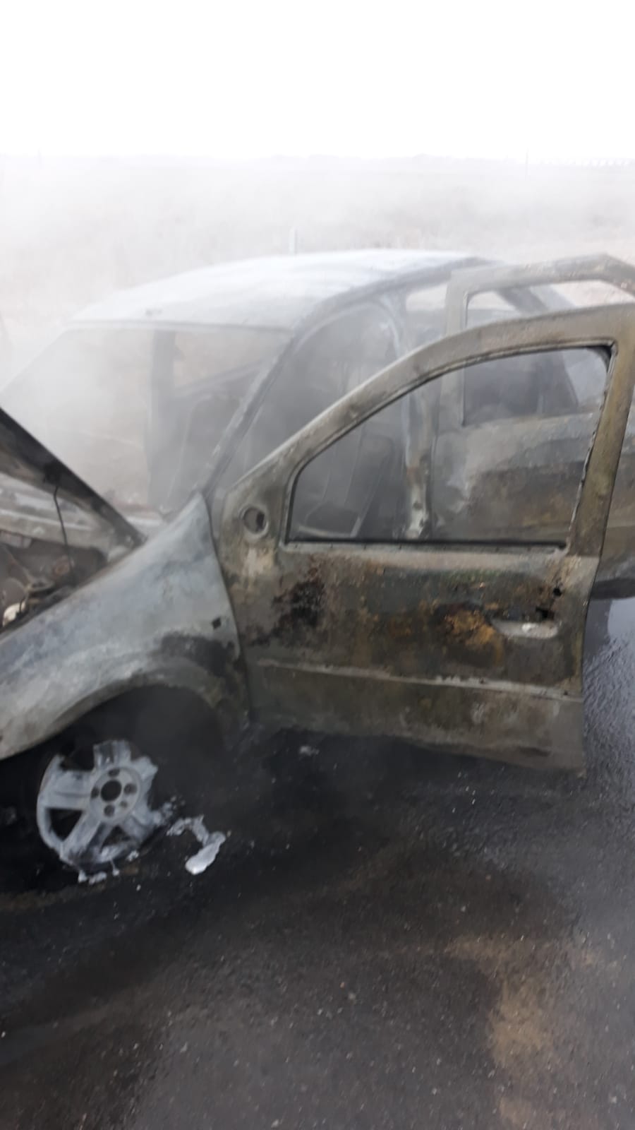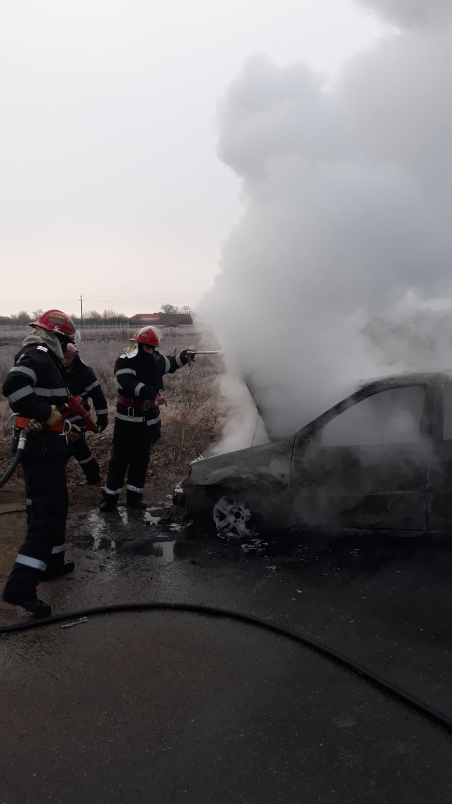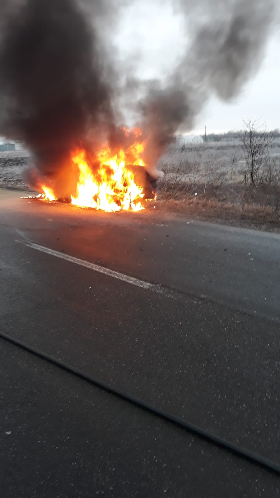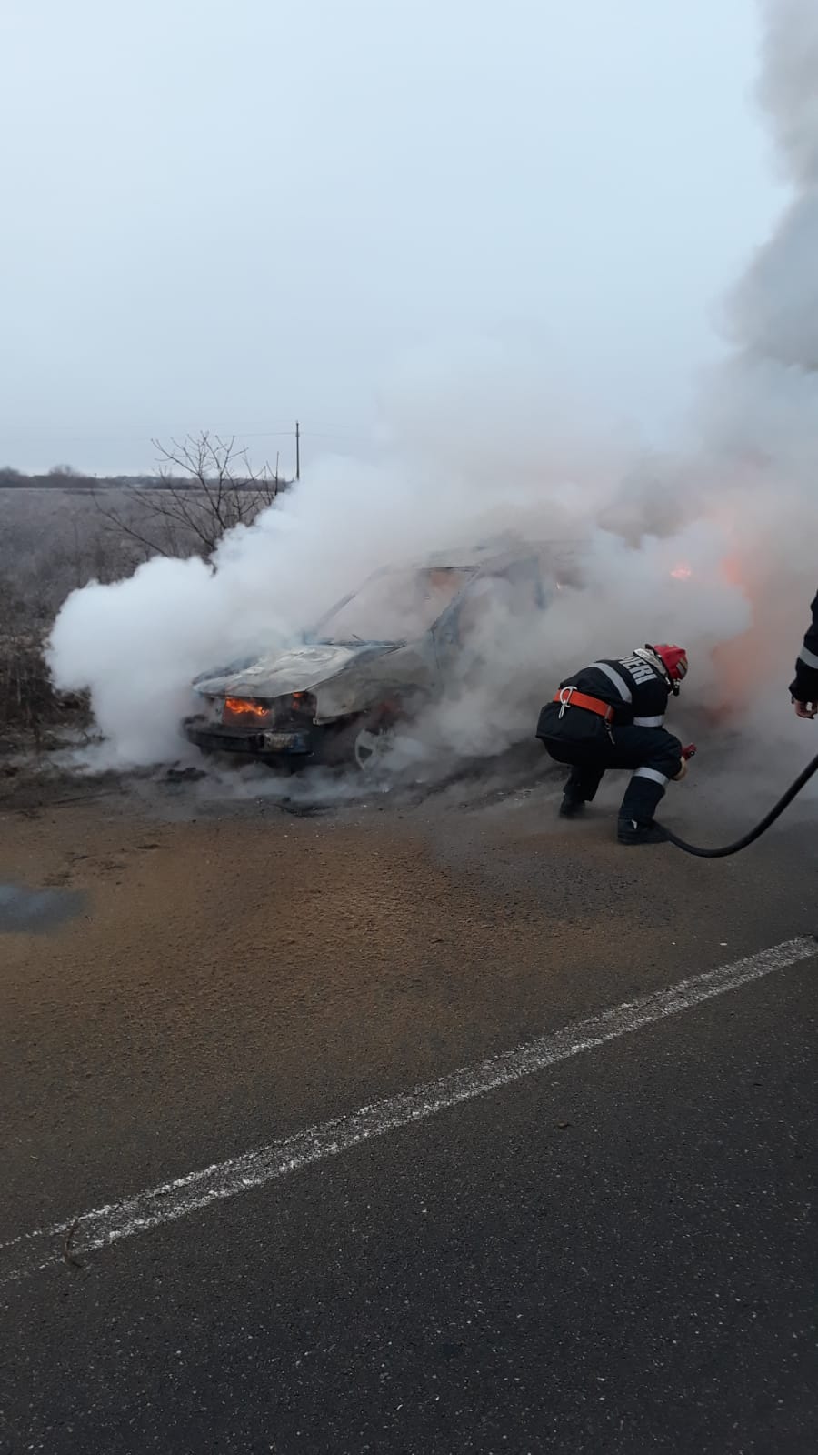 FOTO/ O mașină a ars ca o torță pe un drum din Arad