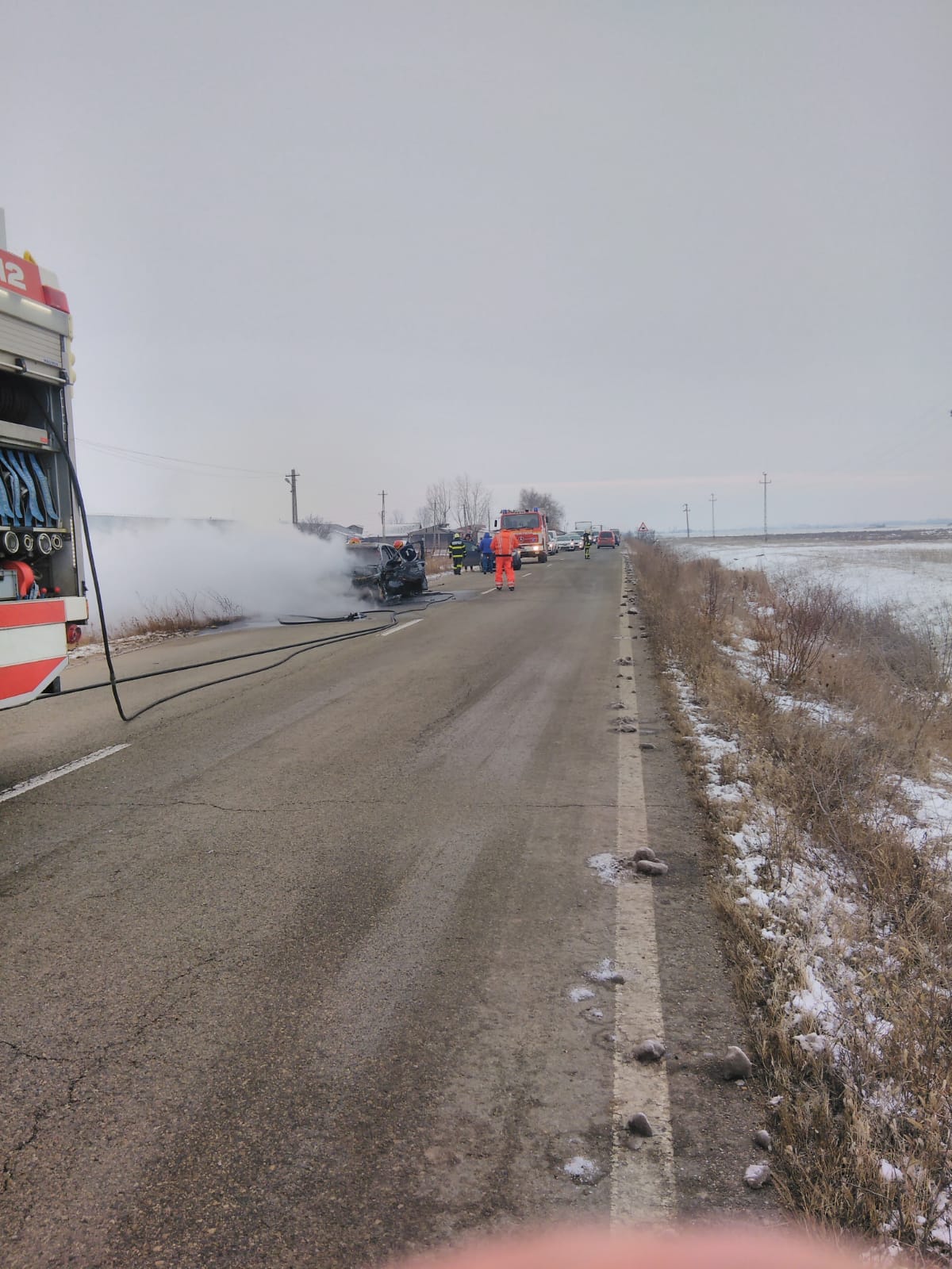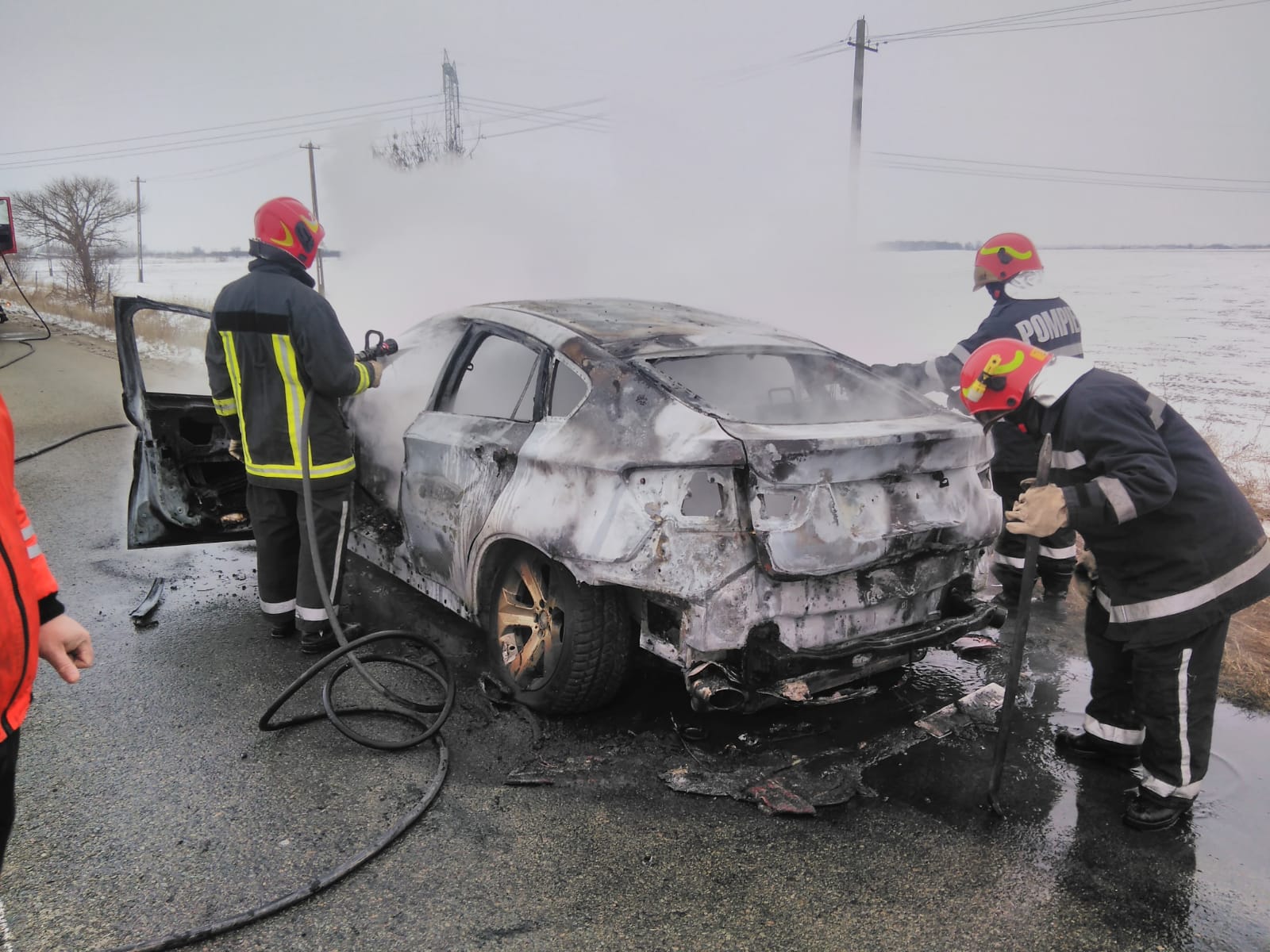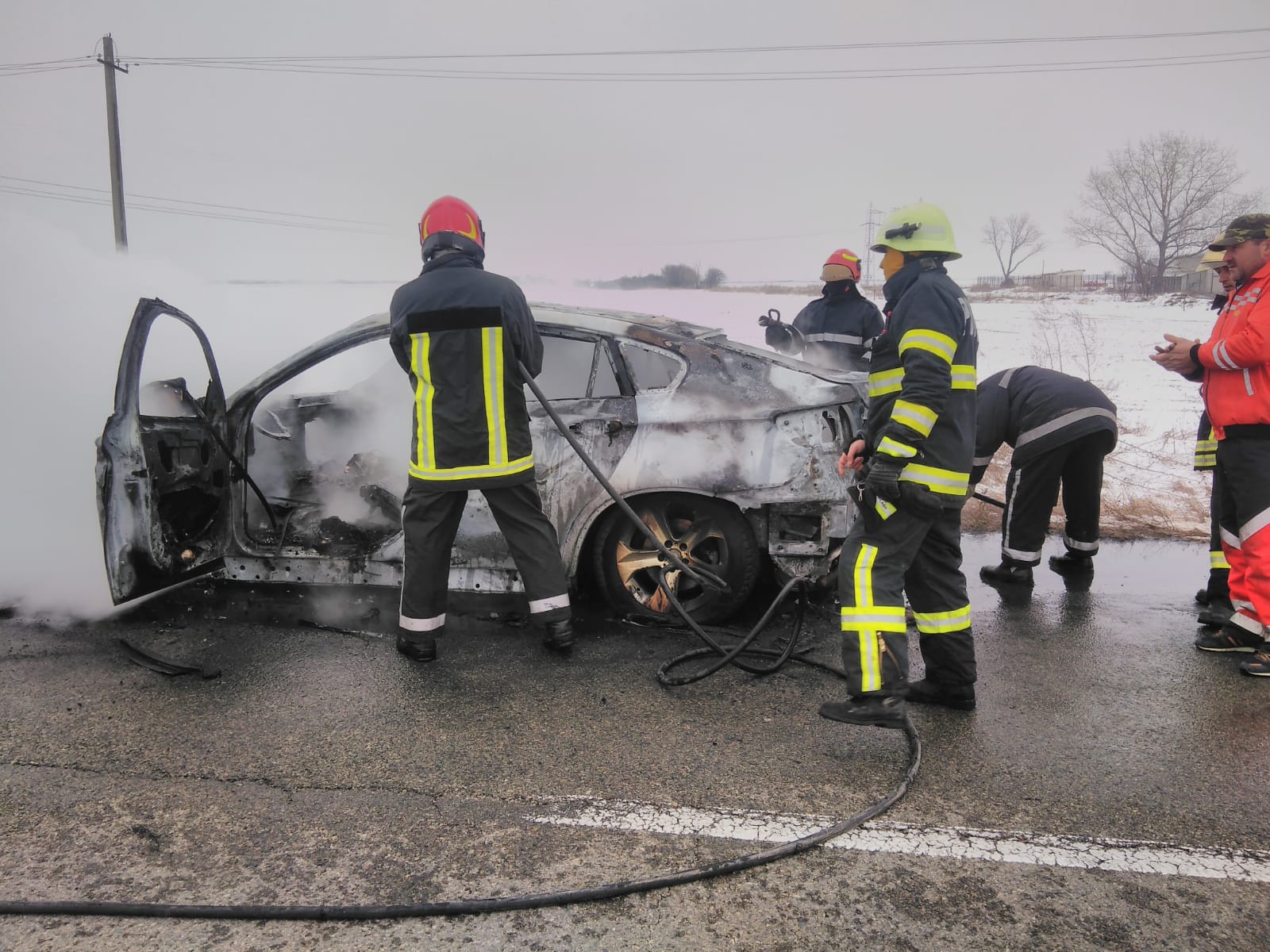 “În momentul sosirii echipajului, mașina ardea în totalitate. Incendiul a fost stins în circa 25 de minute, nu au fost victime. Mașina a luat foc în mers, șoferul reușind să se autoevacueze. Ca urmare a cercetării, s-a stabilit ca și cauză probabilă a incendiului, efectul termic, în speță, cel mai probabil a curs benzină pe galerie sau pe părțile fierbinți ale motorului”, spune purtătorul de cuvânt al Inspectorartului pentru Situații de Urgență Arad, maior George Pleșca.