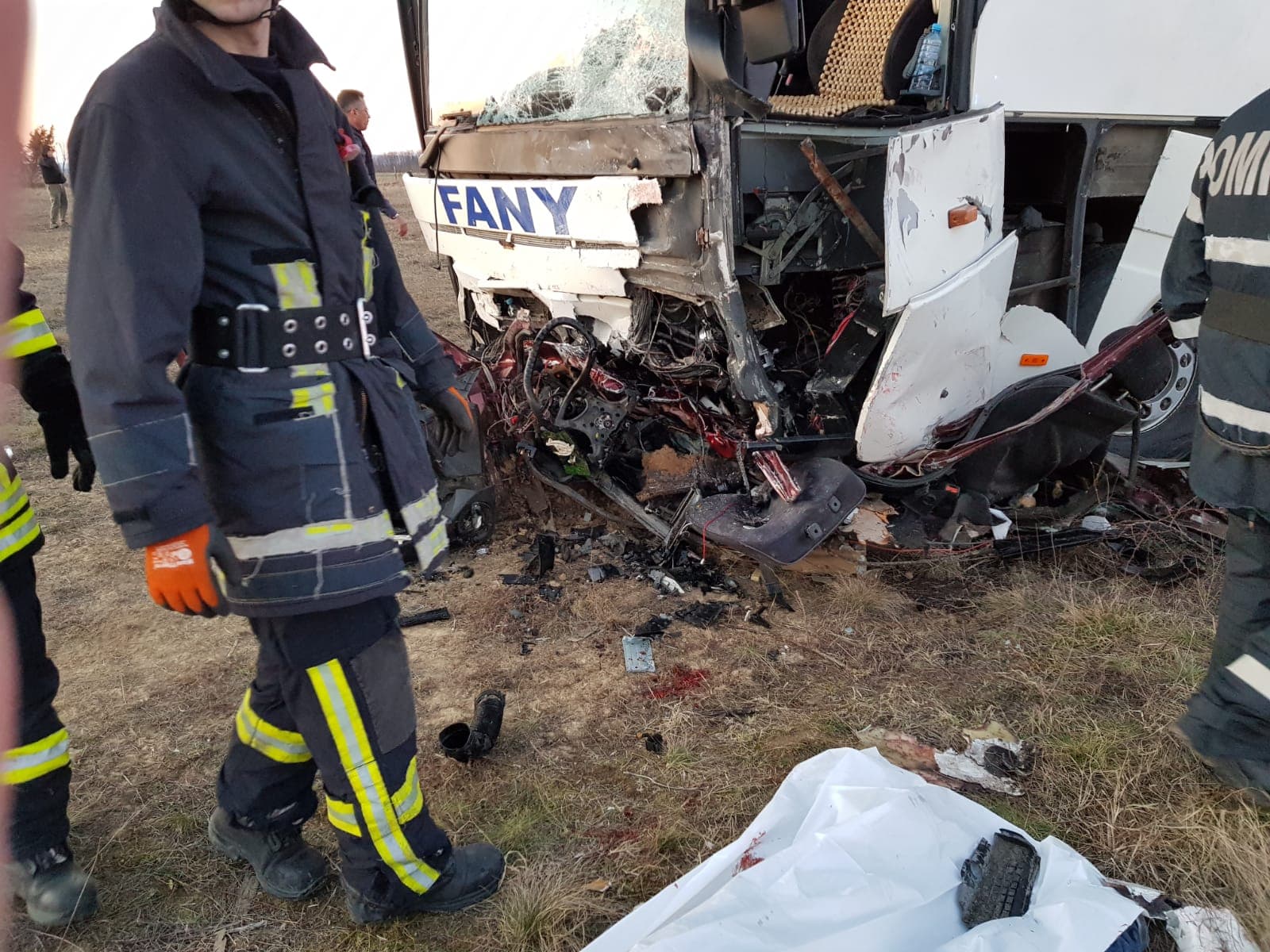 FOTO/ O persoană decedată și mai multe rănite în urma coliziunii dintre o mașină și un autobuz în Timiș