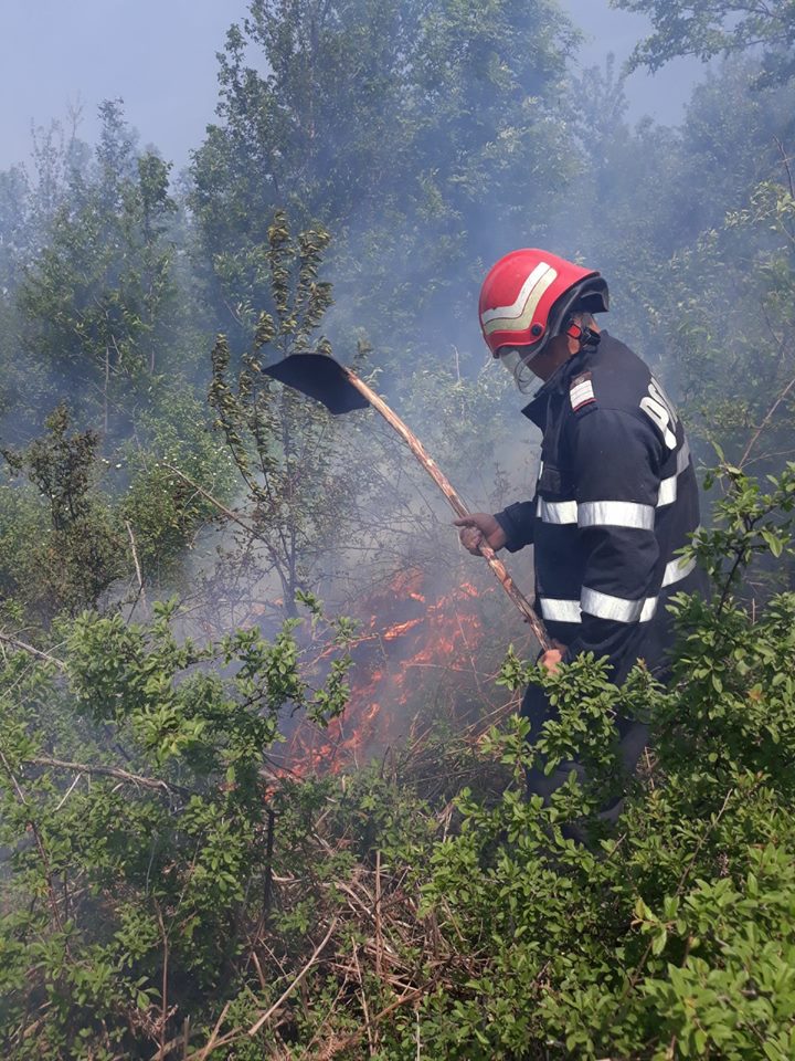 FOTO/ Pompierii arădeni merg kilometri pe jos pentru a stinge un incendiu de arboret