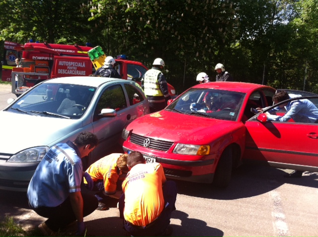 Polițiști, pompieri și medici de la Serviciul de Ambulanță au participat, vineri, la un exercițiu, în zona stadionului Dan Păltinișanu din Timișoara. Potrivit scenariului, șoferul unui autoturism a pierdut controlul volanului, din cauza neatenției. Mașina pe care o conducea a derapat, lovind un pieton ce se afla lângă o mașină parcată. Pasagerul din dreapta, dar și pietonul accidentat au suferit răni grave și au fost preluați de două ambulanțe, pentru îngrijiri medicale.