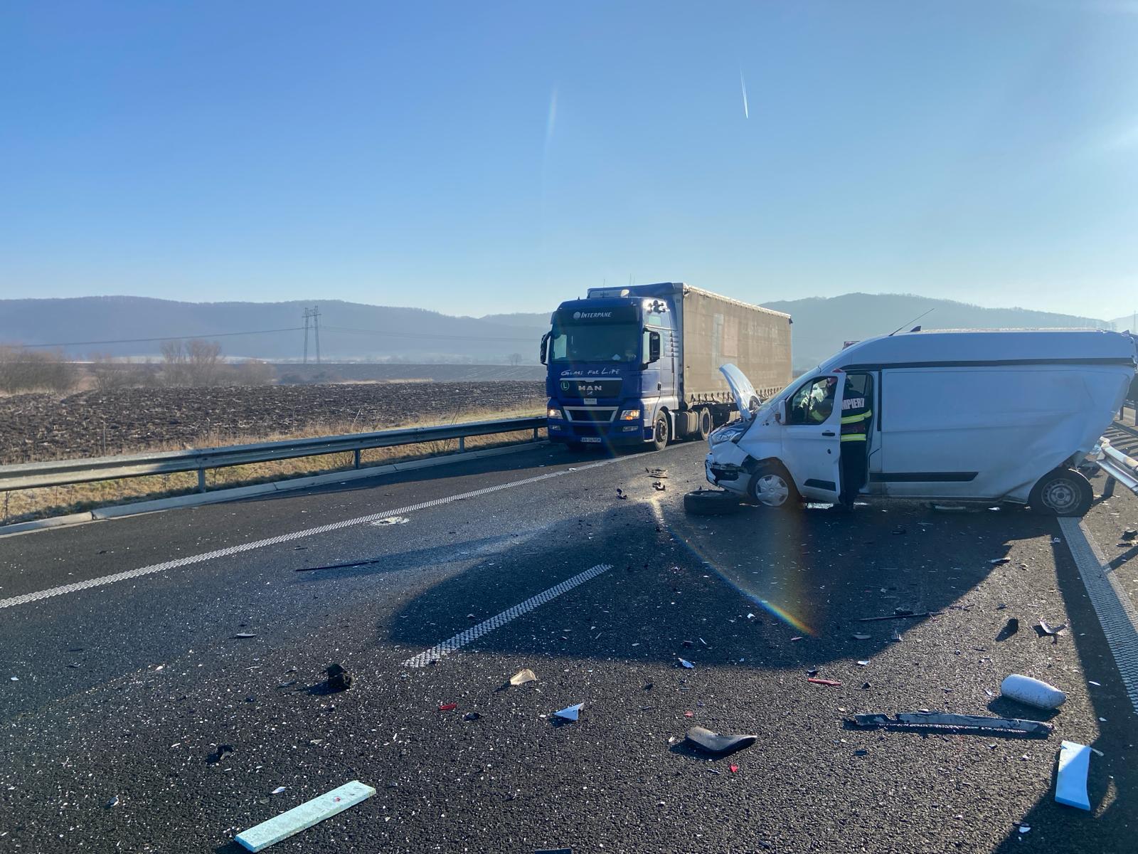 Impact violent între două autoutilitare pe A1 în județul Hunedoara