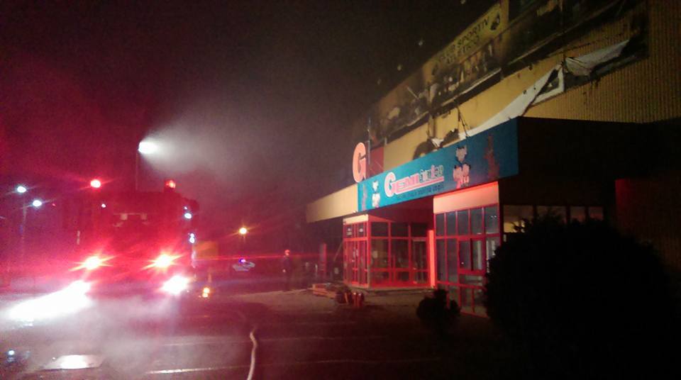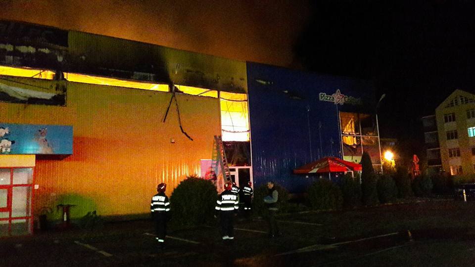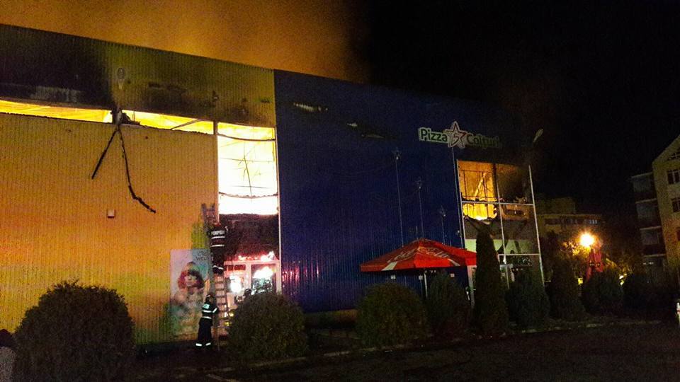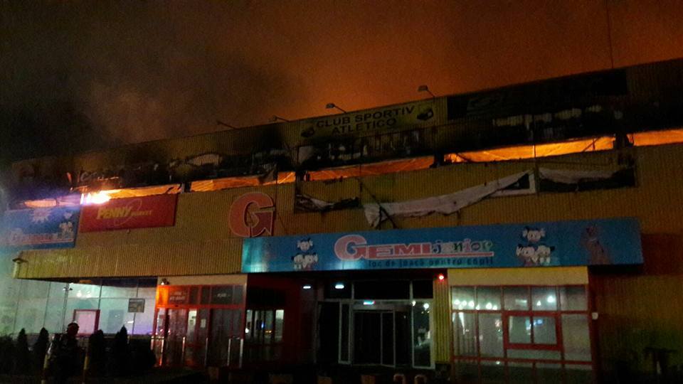 La etajul întâi al complexului comercial se aflau un loc de joacă, o sală de sport şi un magazin de mobilă, care au fost mistuite de flăcări, iar la parter sunt un hipermarket, o pizzerie şi un alt magazin de mobilă. În scurt timp, acoperişul clădirii, de circa 400 mp, s-a prăbuşit.