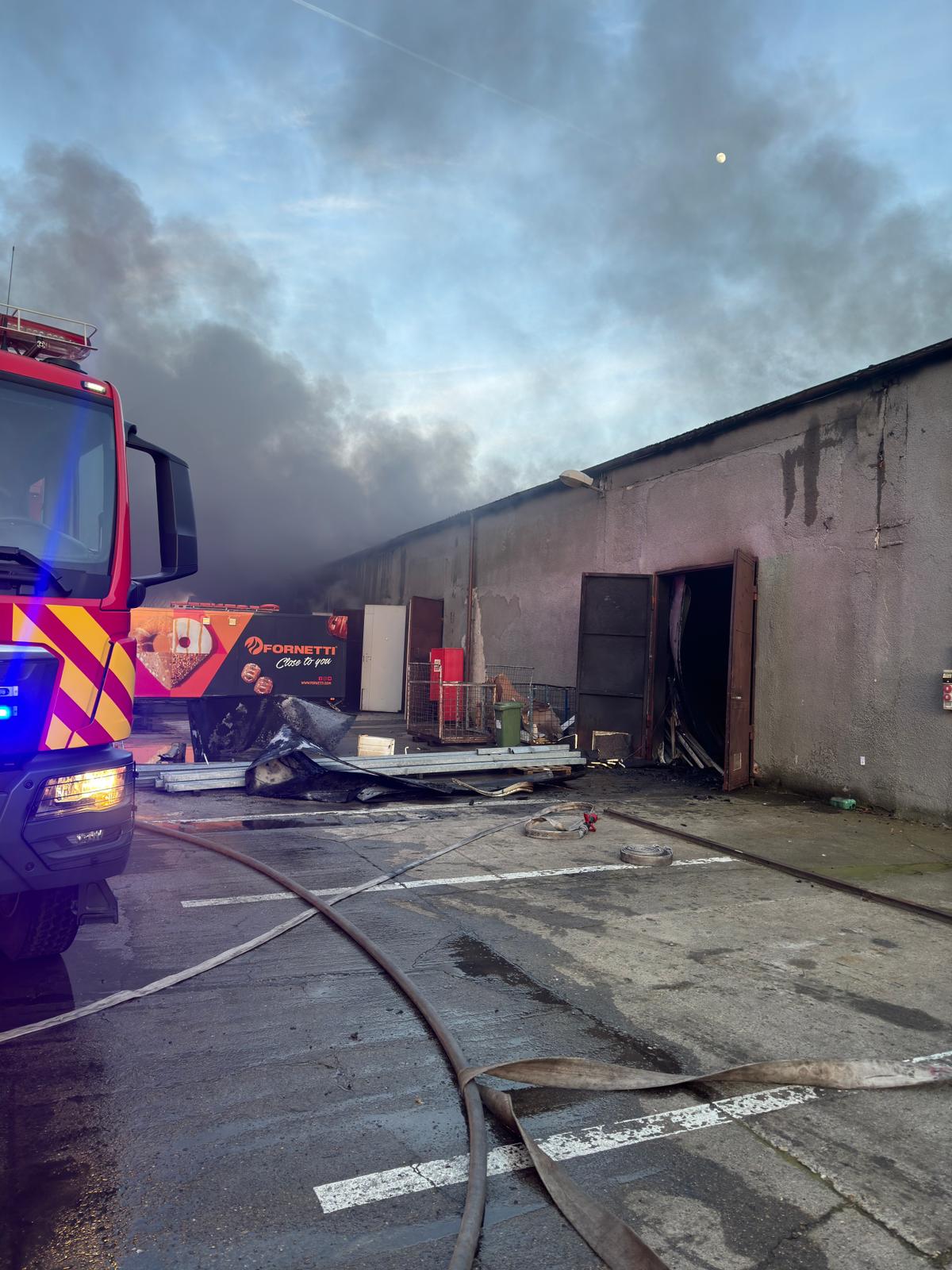 Focul se manifesta în interiorul unei hale și la acoperiș, pe suprafață de aproximativ 2.000 de metri pătrați.