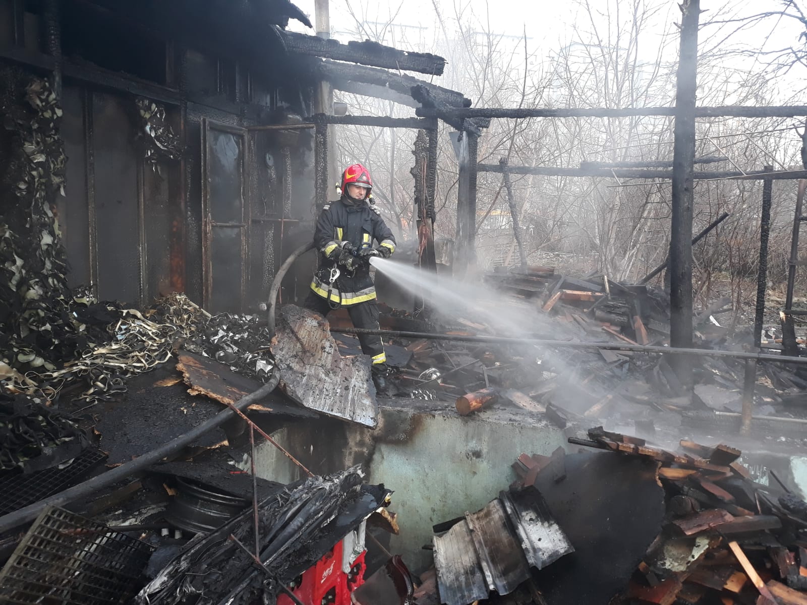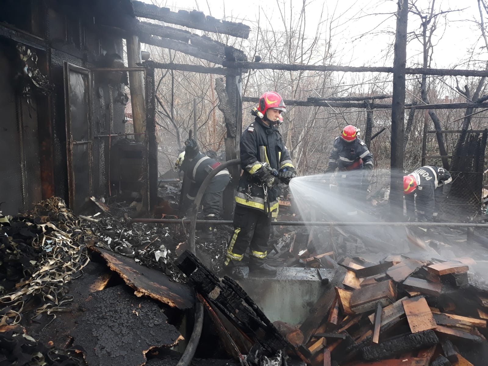 Pompierii militari au intervenit cu 4 autospeciale de stingere cu apă şi spumă, o autoscară mecanică, un echipaj SMURD, 2 ofițeri şi 26 de subofițeri.