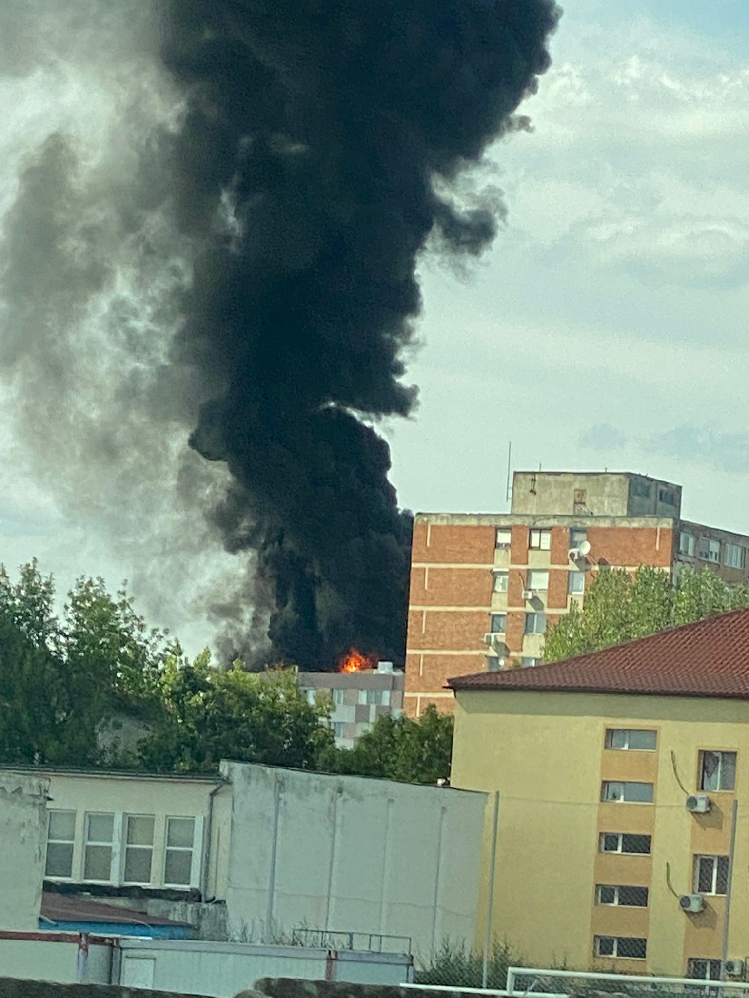 Incendiu la acoperişul unui bloc cu 10 etaje din Timişoara