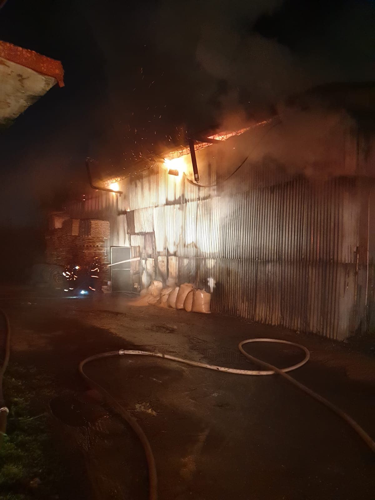 Pompierii de la ISU Timiș au intervenit pentru lichidarea incendiului care se manifesta pe o o suprafaţă de aproximativ 600-700 mp. Incendiul se manifesta cu ardere generalizată la o hală în care sunt depozitate materiale lemnoase, vopseluri şi lacuri, cu degajări mari de fum
