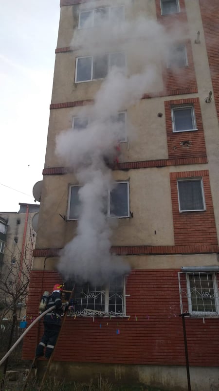 Incendiu violent într-un bloc din Lugoj; locatari evacuați de pompieri