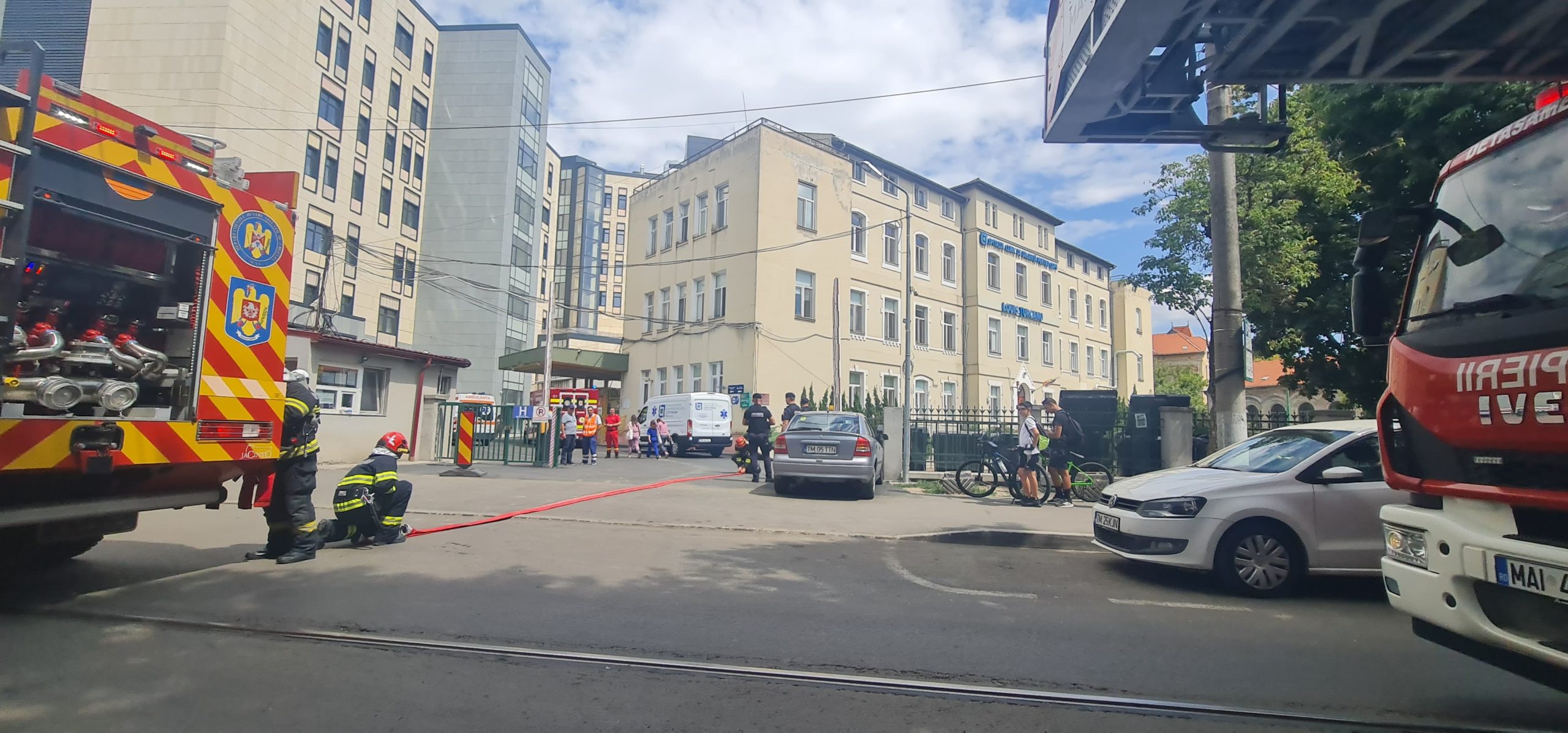 Pompierii timișeni au fost chemați să lichideze un început de incendiu la un echipament electric aflat pe holul etajului 2 al Spitalul de Copii „Louis Țurcanu”.