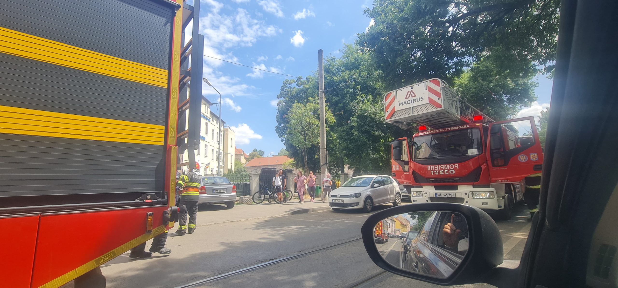 La fața locului s-au deplasat de urgență 17 pompieri din cadrul Detașamentului 2 Timișoara, cu 3 autospeciale de stingere, 1 autospecială de intervenție și lucru la înălțime și o autosanitară SMURD Tip C”, transmite ISU Timiș.