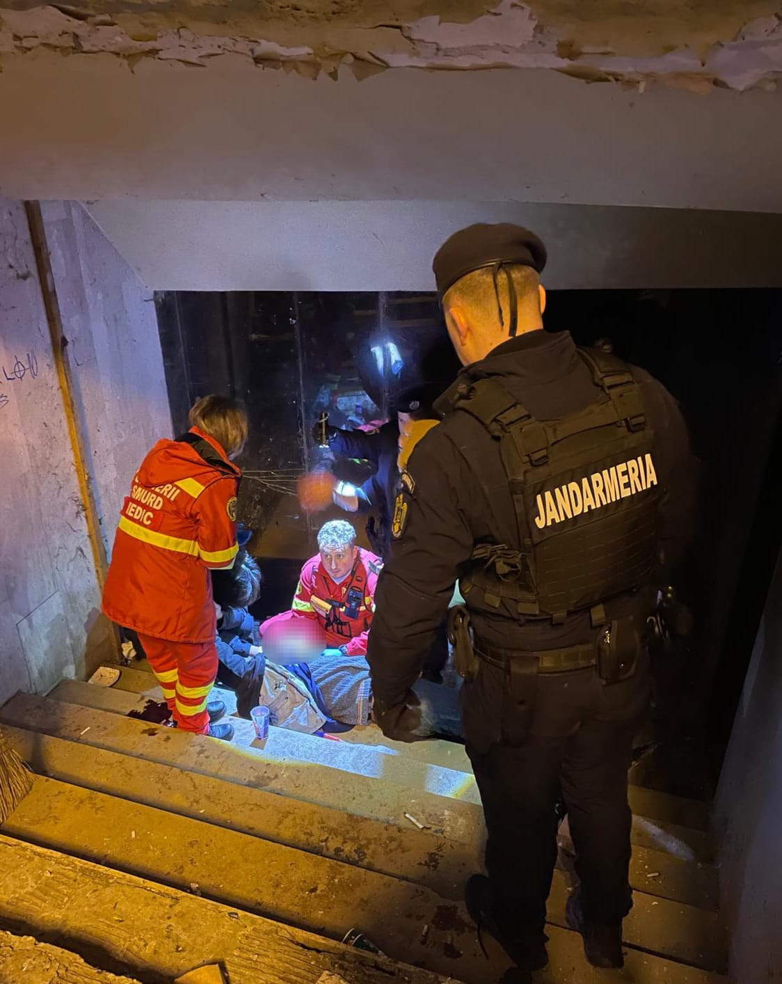 Sesizarea a fost primită în cursul nopții, iar jandarmii aflați în zonă s-au deplasat imediat la fața locului. Din cauza panourilor metalice care blocau accesul în pasaj, aceștia au fost nevoiți să le spargă pentru a ajunge cât mai rapid la victimă, acționând în regim de urgență.