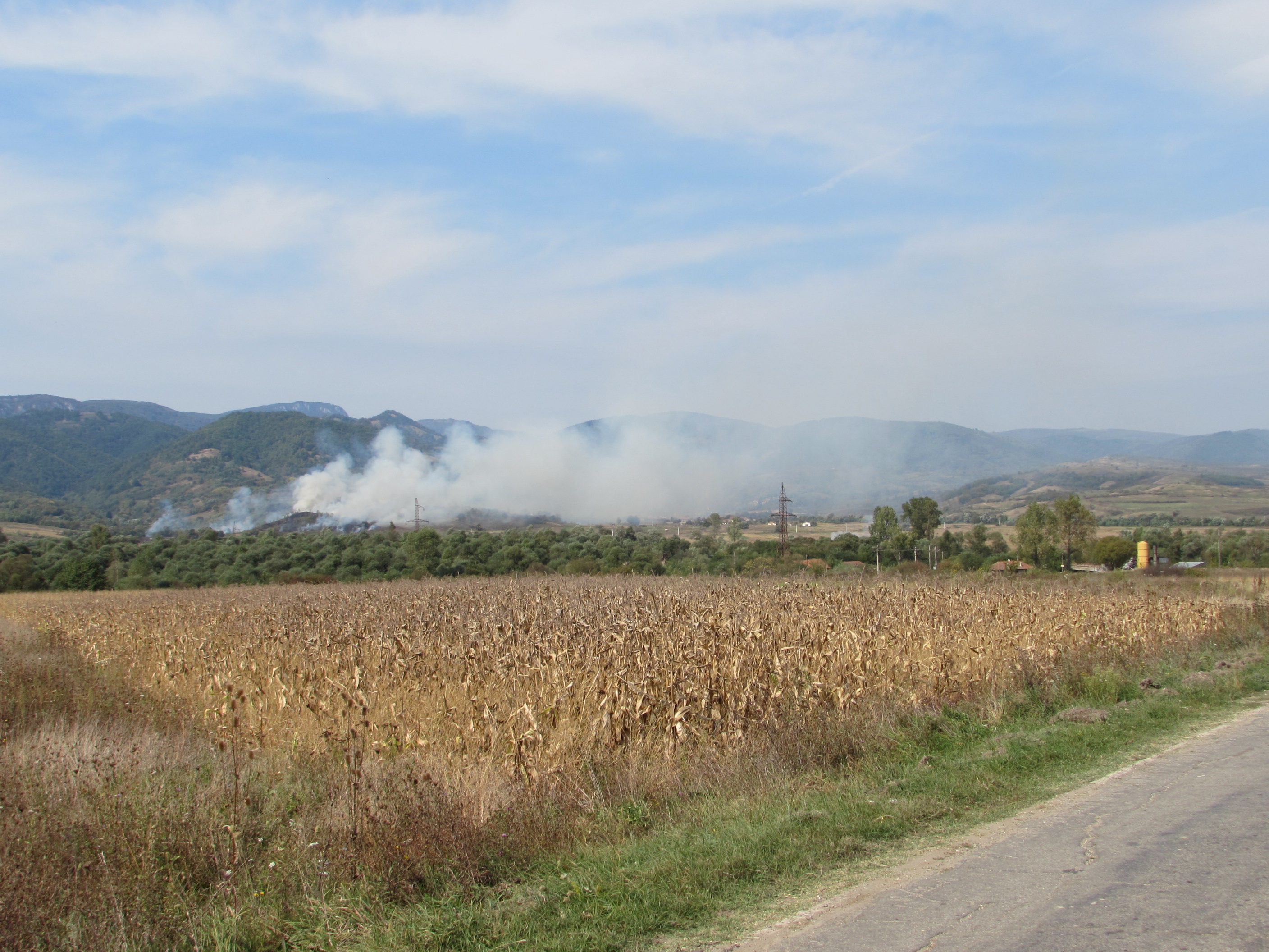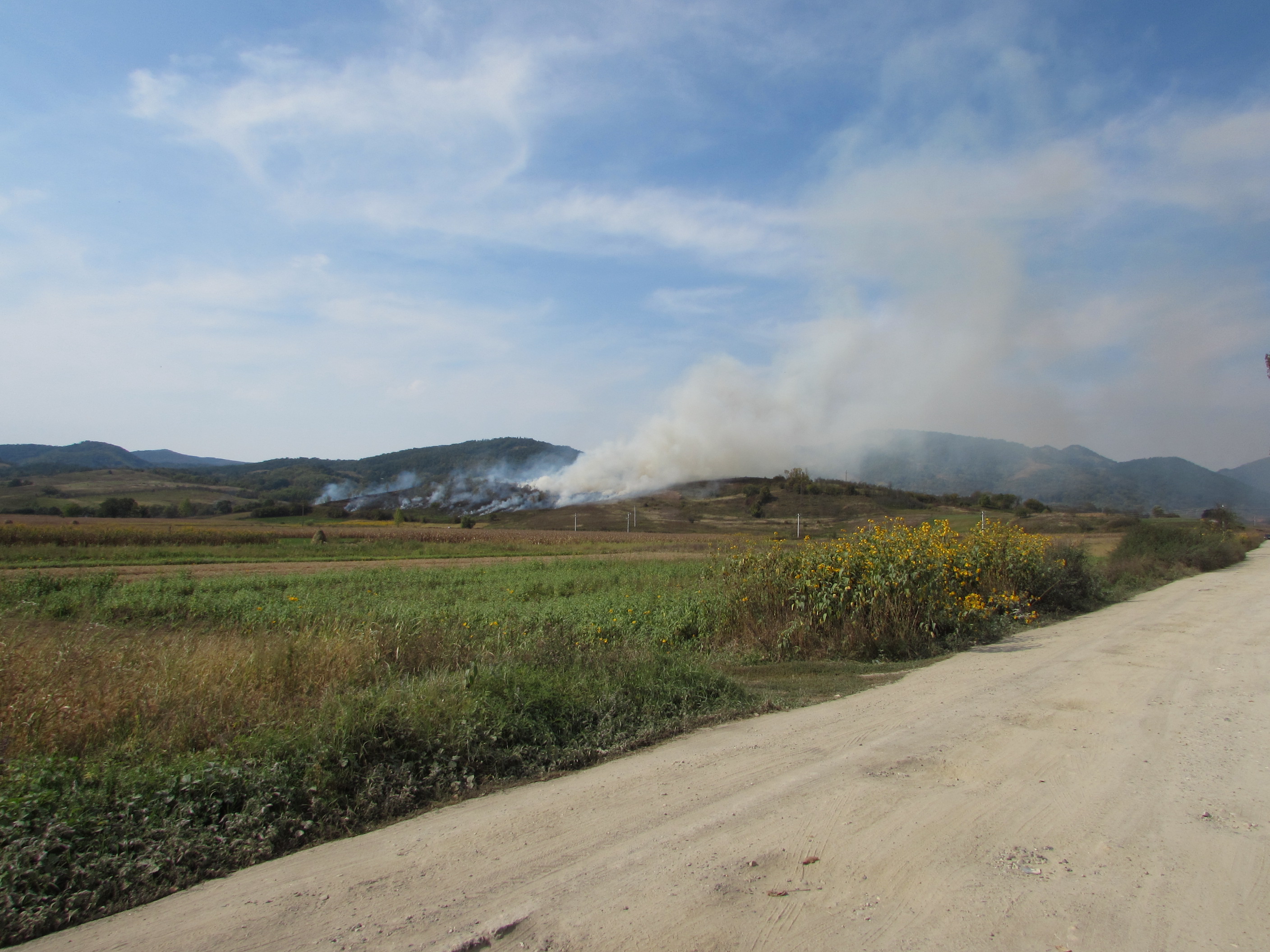 Fum gros se vedea cu puţin timp în urmă în apropiere de Lăpuşnicu Mare, unde este un incendiu de mirişte scăpat de sub control. Fumul scade vizibilitatea şi pe drumurile din zonă, aşadar atenţie, şoferi!
