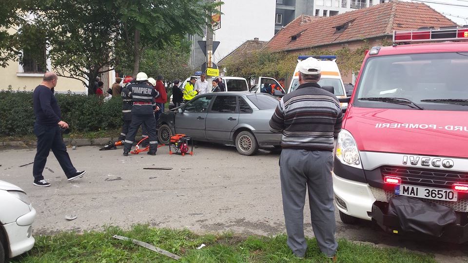 Un grav accident de circulație s-a petrecut vineri, în jurul prânzului, în zona Modern din Timișoara. Accidentul s-a produs la intersecția străzilor Mătăsarilor cu Laleleor. Conform polițiștilor, șoferul unui autoturism Volkswagen Passat care venea pe strada Lalelelor nu a acordat prioritate unui autoturism Peugeot condus pe strada Mătăsarilor, lovindu-l din plin în partea dreaptă. Din primele informații de la fața locului, șoferul din Passat nu a văzut semnul de cedează trecerea.