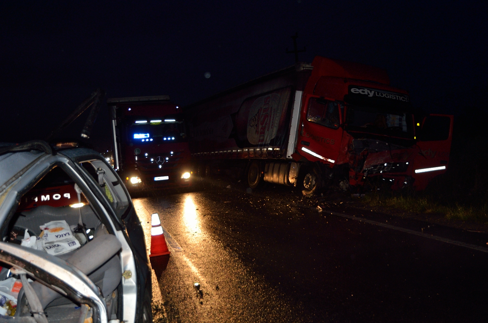 La faţa locului s-au deplasat mai multe ambulanţe, precum şi un echipaj de la descarcerare. Cu toate acestea, pentru femeia şi cei trei bărbaţi aflaţi în autoturism nu s-a mai putut face nimic. Şoferul TIR-ului nu a suferit leziuni, iar pasagera din autotren a fost uşor rănită.