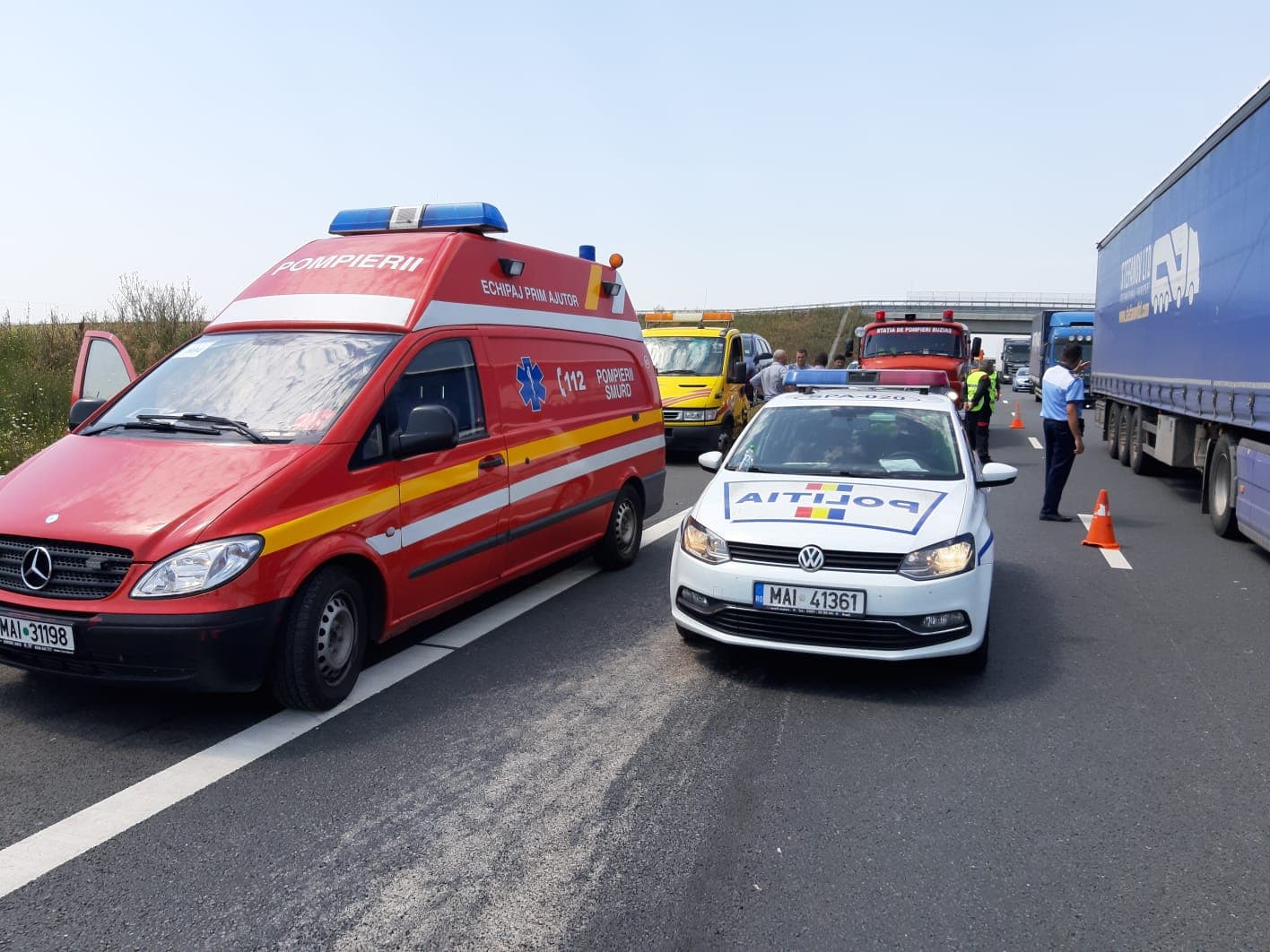A fost cel de-al doilea accident produs astăzi pe acest tronson de autostradă. În apropiere de Remetea Mare, pe sensul de mers spre Lugoj, o camionetă, un microbuz de transport marfă și două mașini s-au ciocnit din cauza nepăstrării distanței regulamentare în mers.