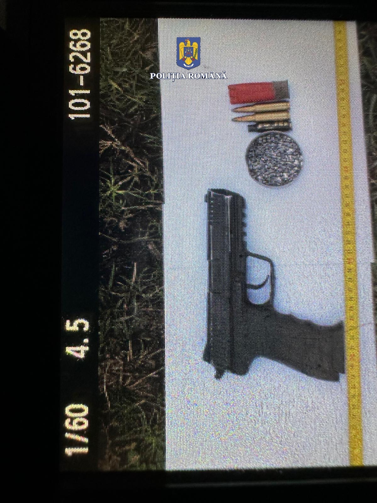 De asemenea, la canton au fost descoperite, ca fiind deţinute fără drept, un pistol neletal, două cartuşe şi o cutie de diaboluri, calibru 4,5, destinate armelor neletale de tir sportiv.