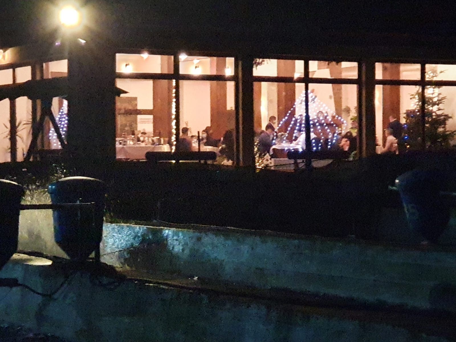 Trei echipaje de Poliție au mers la fața locului după ce s-a făcut o sesizare, iar administratorul pensiunii a precizat că era vorba despre o nuntă. El a fost amendat cu 10.000 de lei.