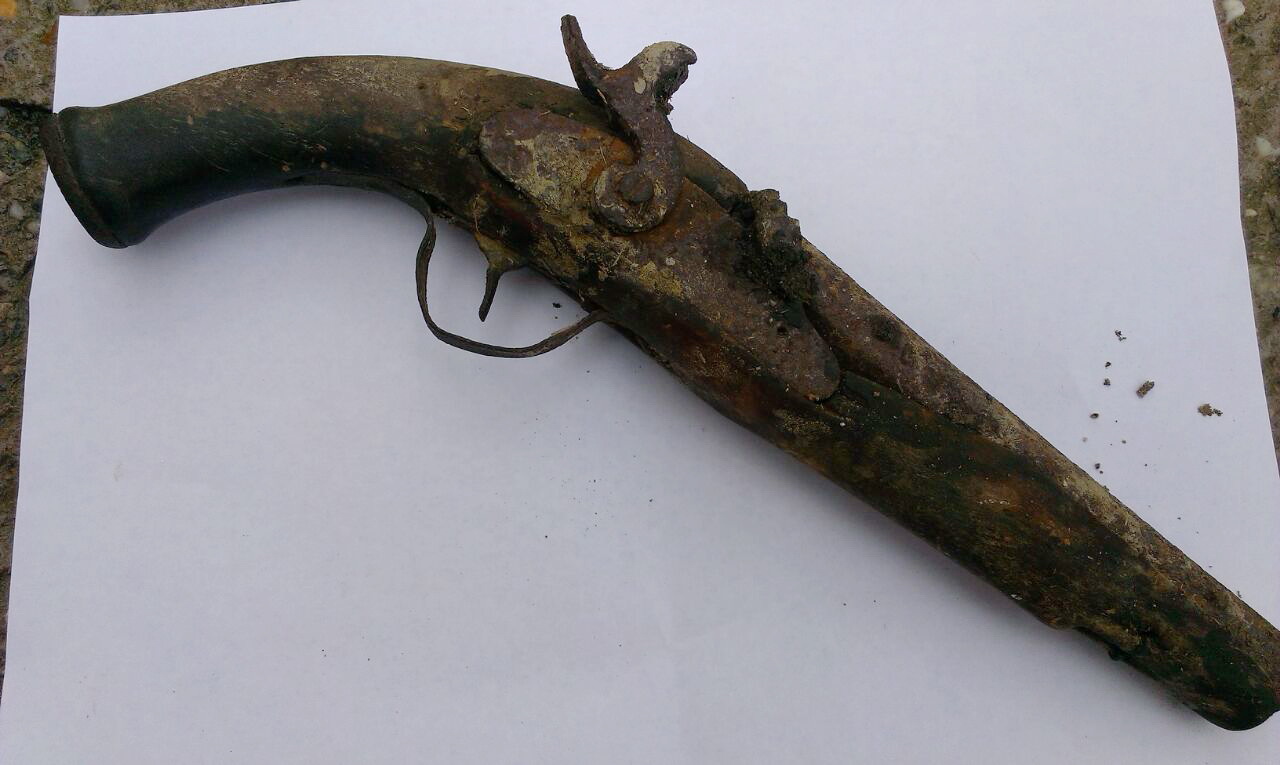 Pistol vechi de 150 de ani, descoperit de polițiștii de frontieră