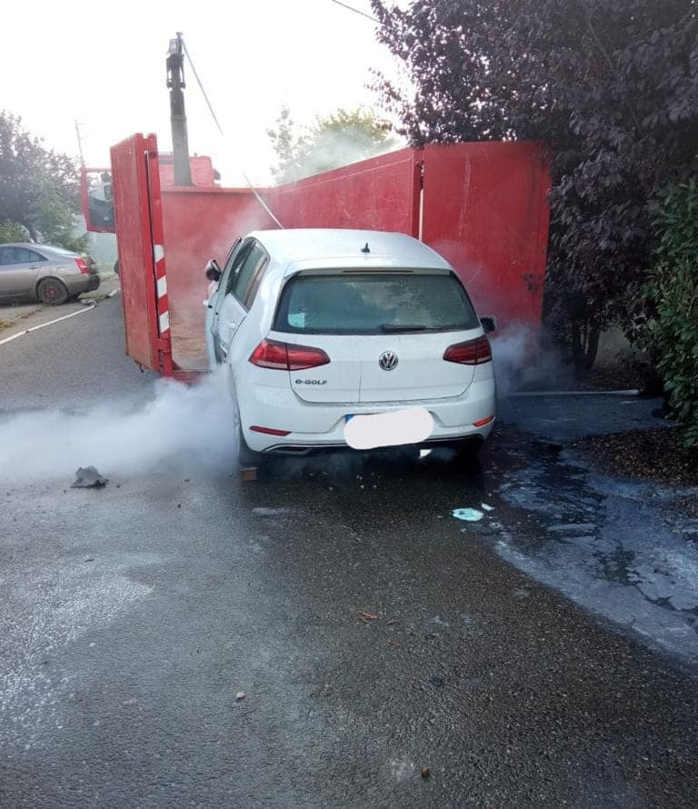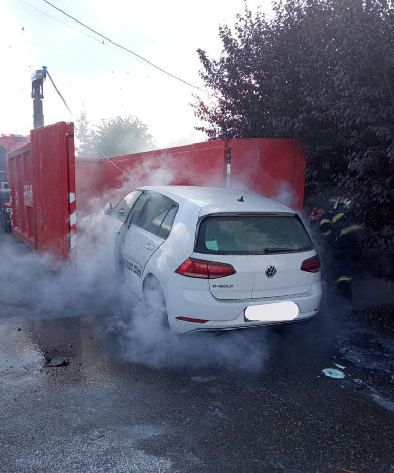Pompierii din Timiș au fost solicitați să intervină, în premieră, la stingerea unui incendiu la un autoturism electric.