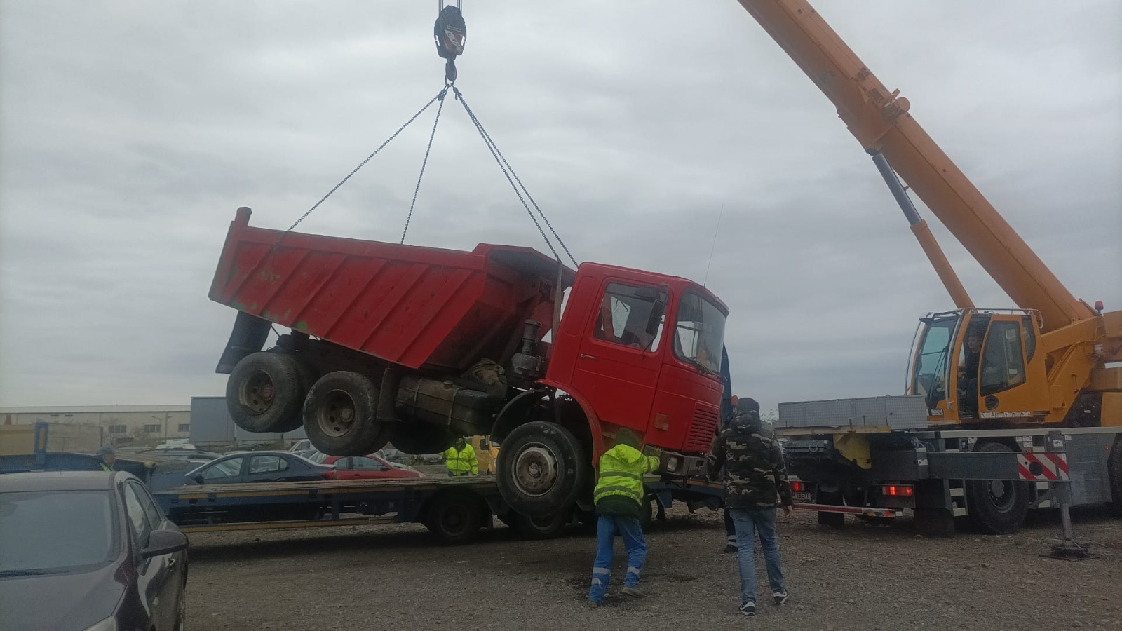 Vehiculul abandonat în groapă a fost scos de echipele SDM Timișoara cu o macara de 18 tone și transportat la depozitul primăriei.