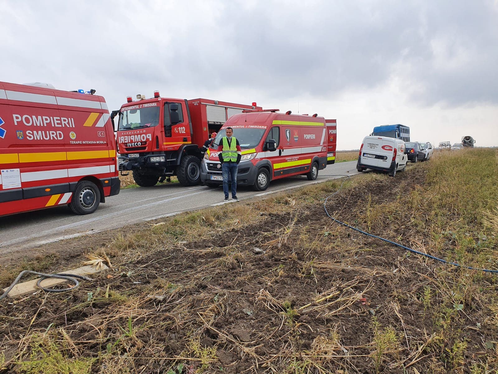 “La fața locului s-au deplasat de urgență, 2 autospeciale de descarcerare, dintre care o autospecială de descarcerare grea, o autospecială de primă intervenție, un echipaj SMURD și 11 pompieri”, anunță ISU Timiș.