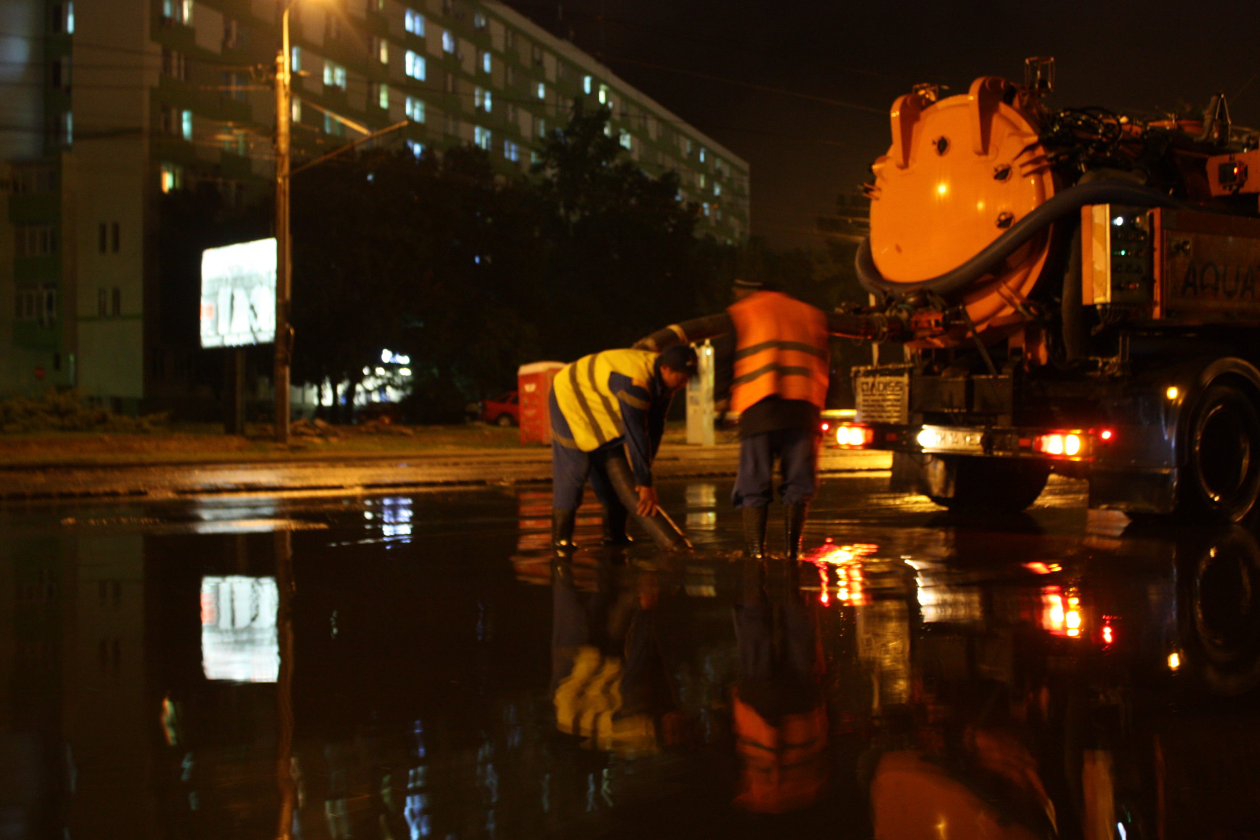 Mai multe străzi din Timișoara au fost inundate, în urma ploilor abundente de joi. Spre seară, după o încă o jumătate de oră de ploaie torențială, canalizarea a cedat în mai multe locații din oraș. Pe bulevadrul Liviu Rebreanu, de exemplu, a fost nevoie de intervenția a două echipaje Aquatim pentru a evacua apa strânsă într-o parcare aflată chiar în fața Spitalului Județean.