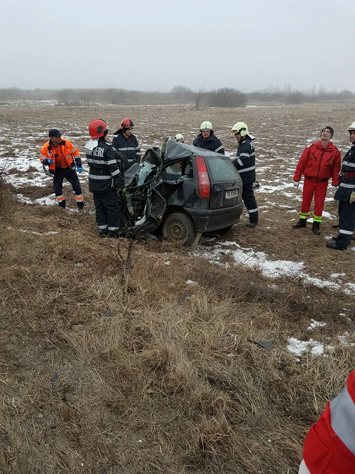 Pompierii militari au intervenit pentru descarcerarea bărbatului dintr-un autoturism marca Fiat Punto. Din nefericire la sosirea echipajelor tânărul nu prezenta semne vitale iar medicul a declarat decesul.
