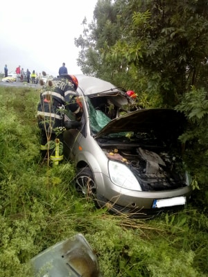 La faţa locului s-au deplasat o autospecială de stingere cu modul de descarcerare, un echipaj al Serviciului Judeţean de Ambulanţă şi unul de poliţie.