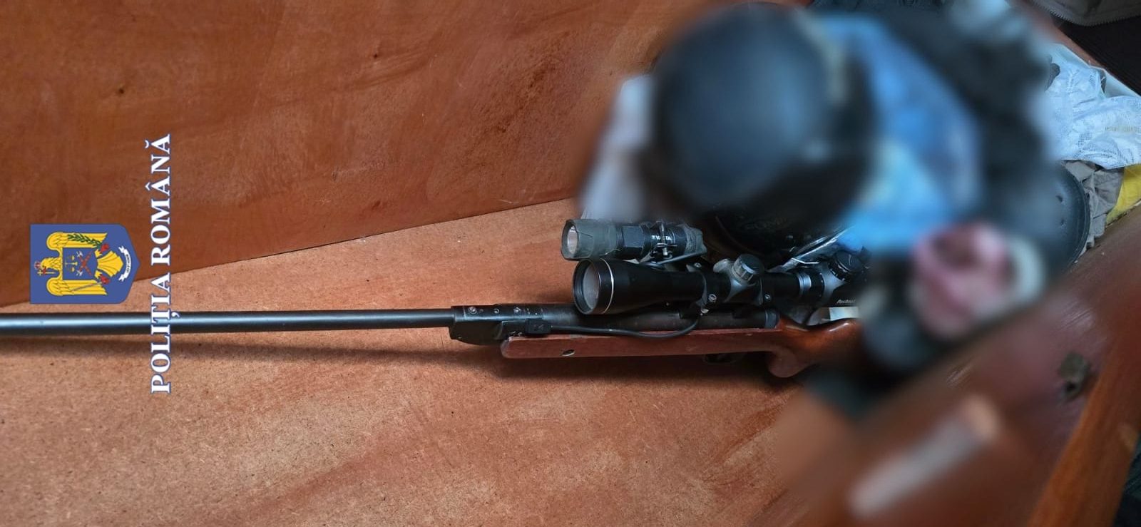 Au fost descoperite o armă lungă neletală cu aer comprimat, dotată cu lunetă, o armă cu două țevi, calibru 16, un pistol tip revolver, țevi de armă fără serie identificabilă, un încărcător de armă, peste 700 cartușe cu alice și glonț de diferite mărci și calibre, peste 400 de alice de calibru 4,5/177 și 199 alice de calibru 5,5 mm, 46 cartușe calibru 12 mm și 8 cartușe calibru 16 mm, 141 capse de inițiere și 105 bile din plumb și aproximativ 3 kg de alice din plumb.