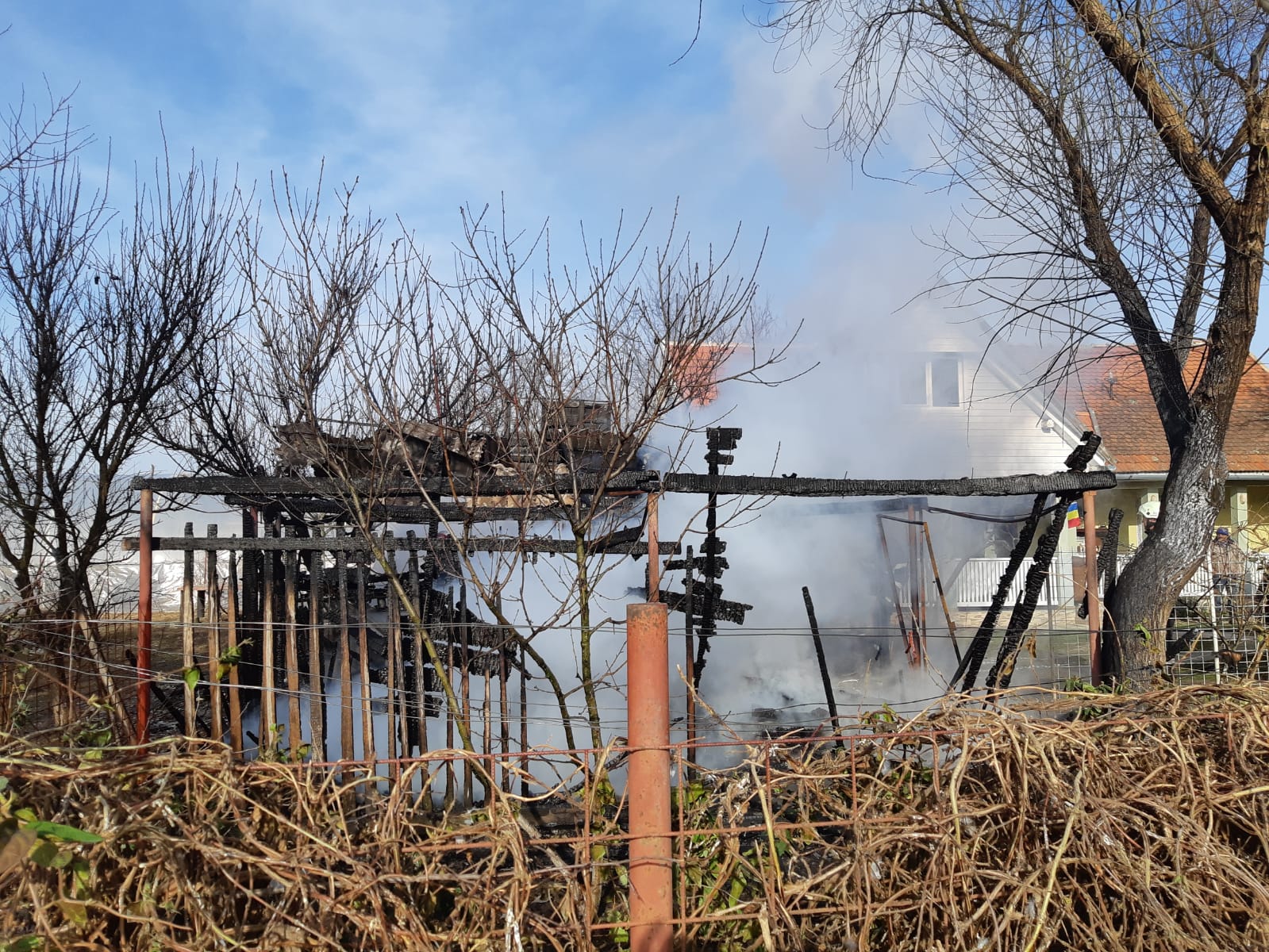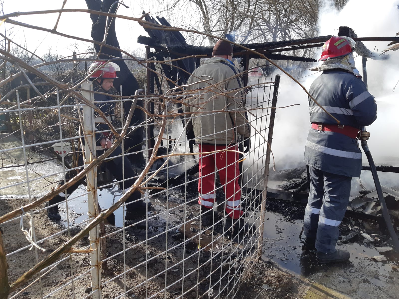 Trei pompieri care ieșiseră din tura de serviciu se îndreptau spre casă și, la vederea incendiului, s-au alăturat voluntarilor, reușind să limiteze extinderea focului până la sosirea echipajului din Ineu.