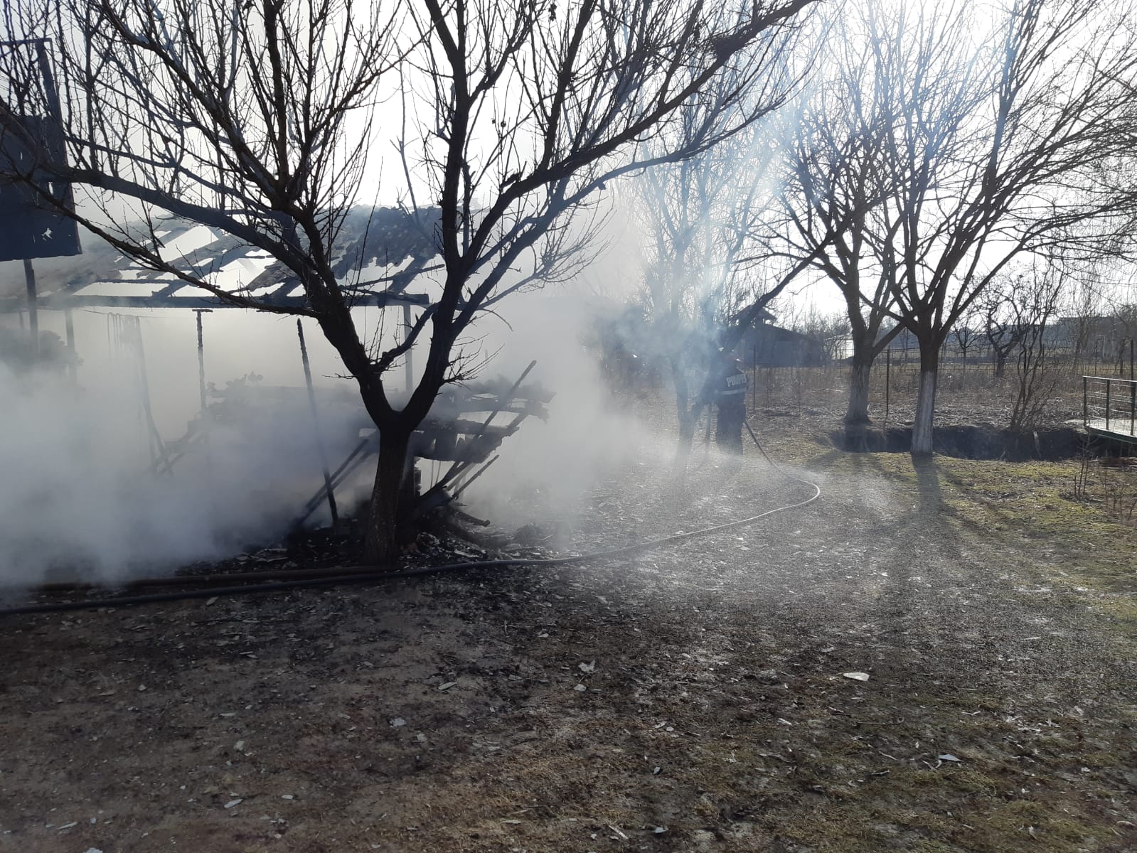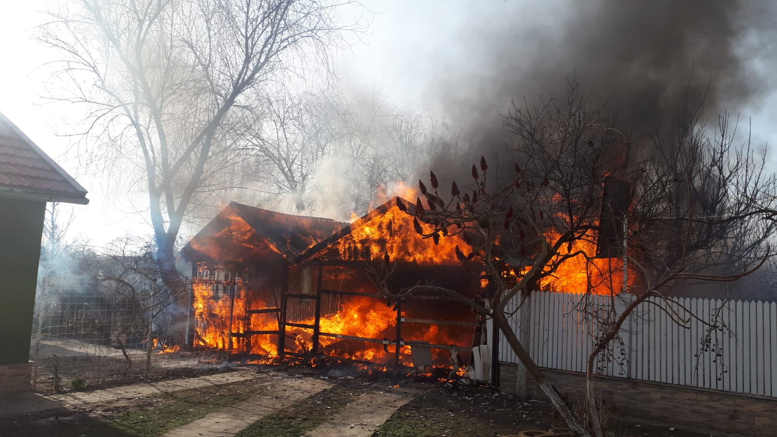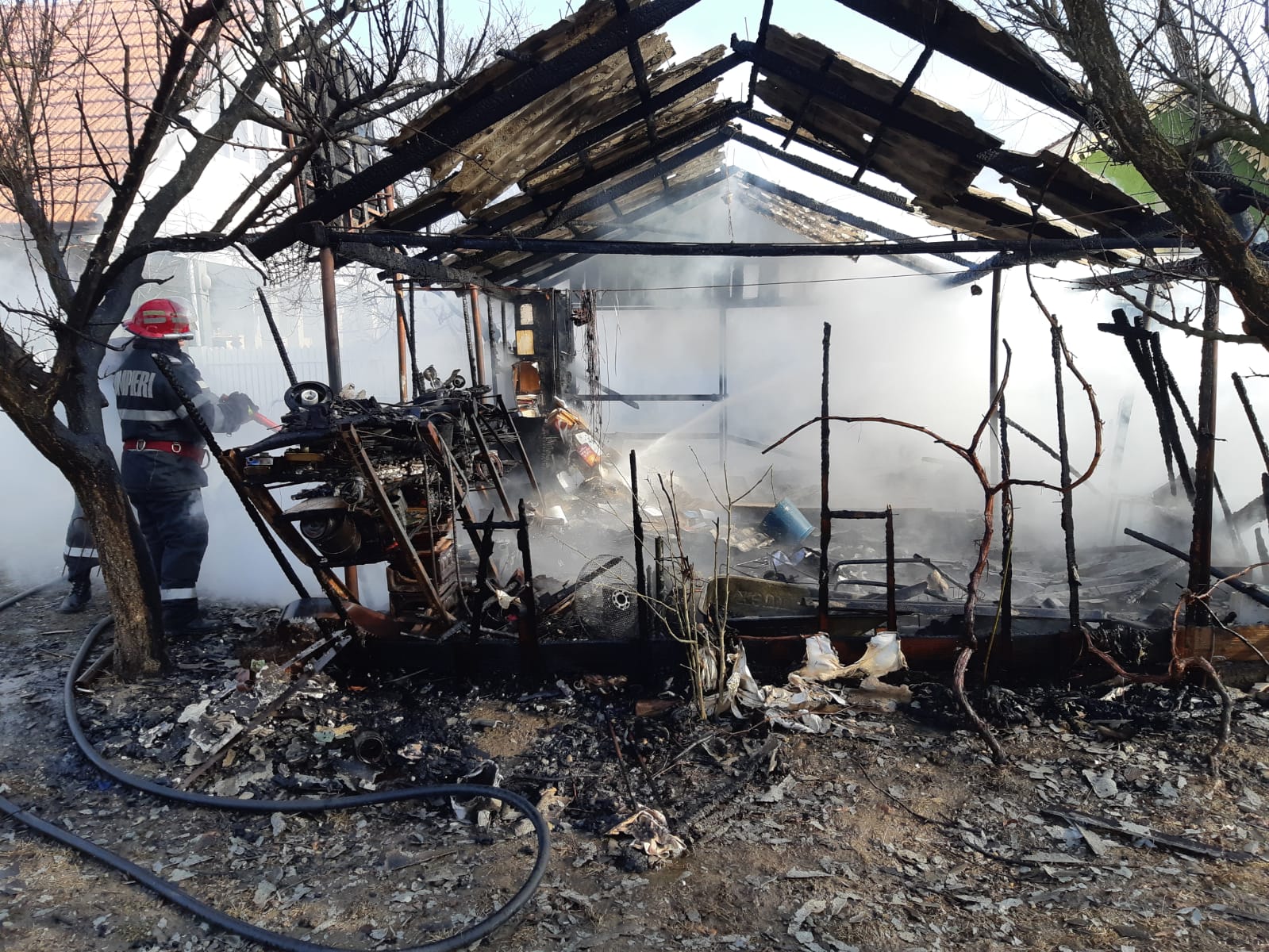 Au fost evacuate două butelii din garaj, iar după aproximativ o oră focul a fost stins, fiind salvate casa și celelalte anexe.