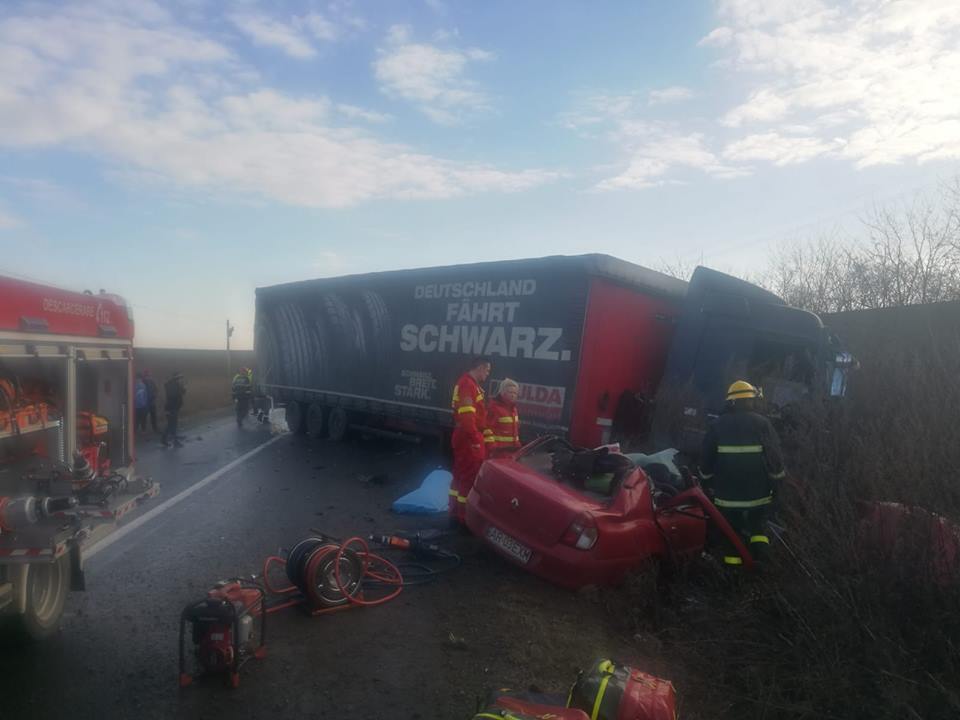 „În accident au fost implicate un autoturism și un autocamion care transporta fier. În urma accidentului, șoferul autoturismului a rămas încarcerat. S-a intervenit din cadrul Detașamentului de Pompieri Arad cu o autospecială pentru descarcerare ușoară, elicopterul SMURD și de la Serviciul Voluntar pentru Situații de Urgență Semlac. S-au asigurat măsurile PSI. După ce au ajuns forțele de intervenție, a fost extrasă victima care a fost ulterior declarată decedată de către medicul de pe elicopterul SMURD”, spune purtătorul de cuvânt al Inspectoratului pentru Situații de Urgență Arad, Călin Domșa