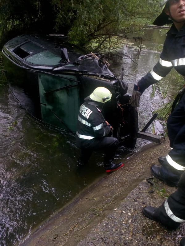 Şoferul unei maşini în care se aflau doi adulţi şi cinci copii a adormit la volan şi a plonjat cu maşina, în albia unui râu, pe raza comunei timişene Voiteg.