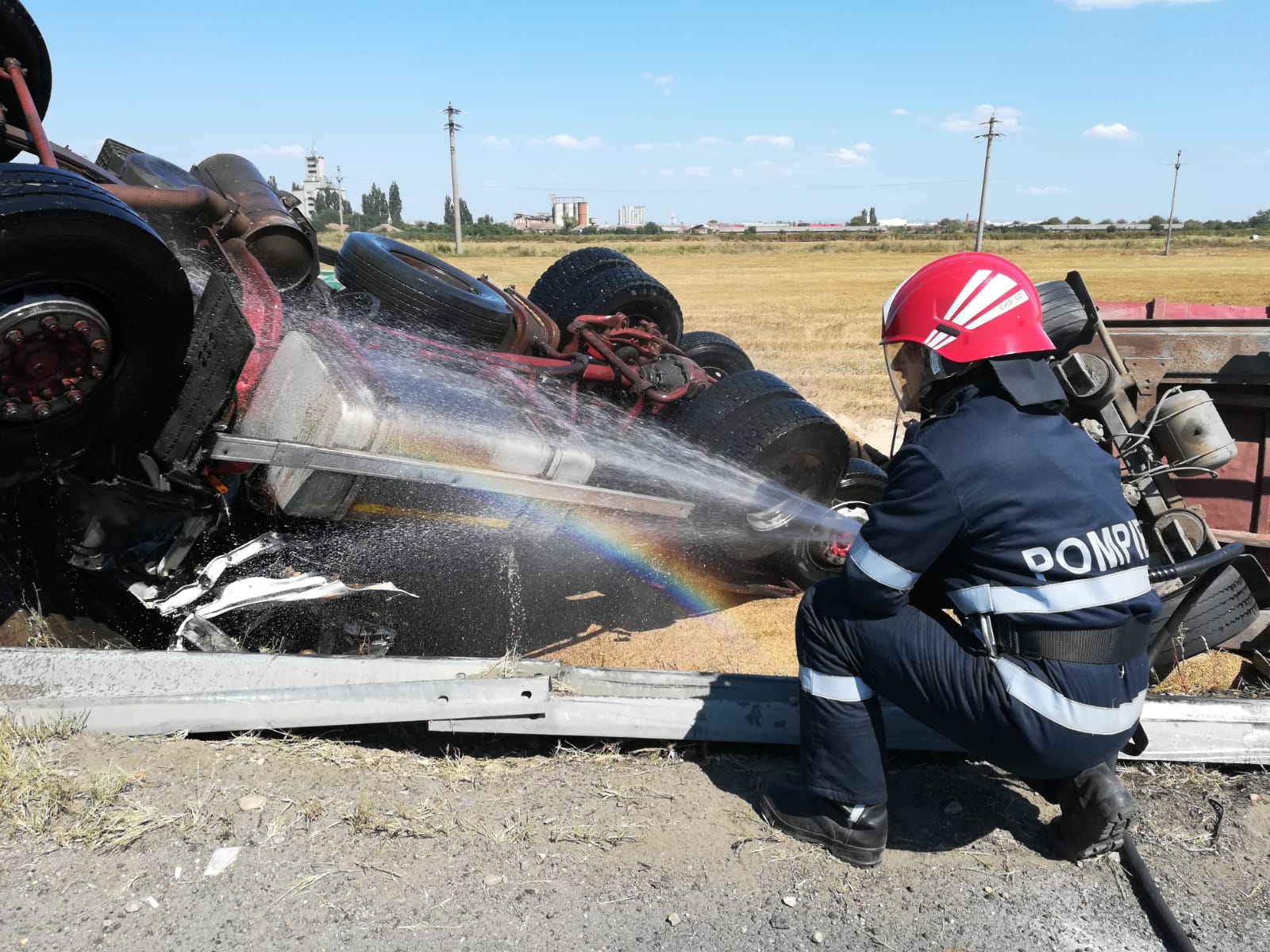Purtătorul de cuvânt al Inspectoratului pentru Situații de Urgență Arad, maior George Pleșca, spune că s-au înregistrat și scurgeri de carburant. La fața locului a intervenit Detașamentul Arad cu o autospecială de stingere, o autospecială SMURD, una de primă intervenție și comandă.