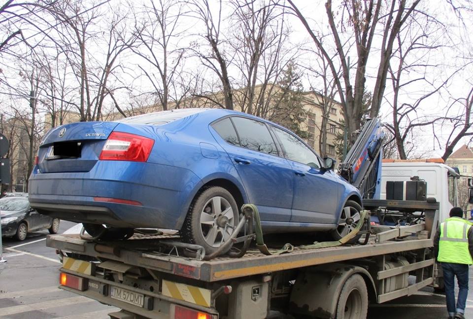 Şoferii din Timişoara care şi-au lăsat maşinile pe pistele de biciclete sau în staţiile mijloacelor de transport s-au pomenit cu autovehiculele ridicate.
