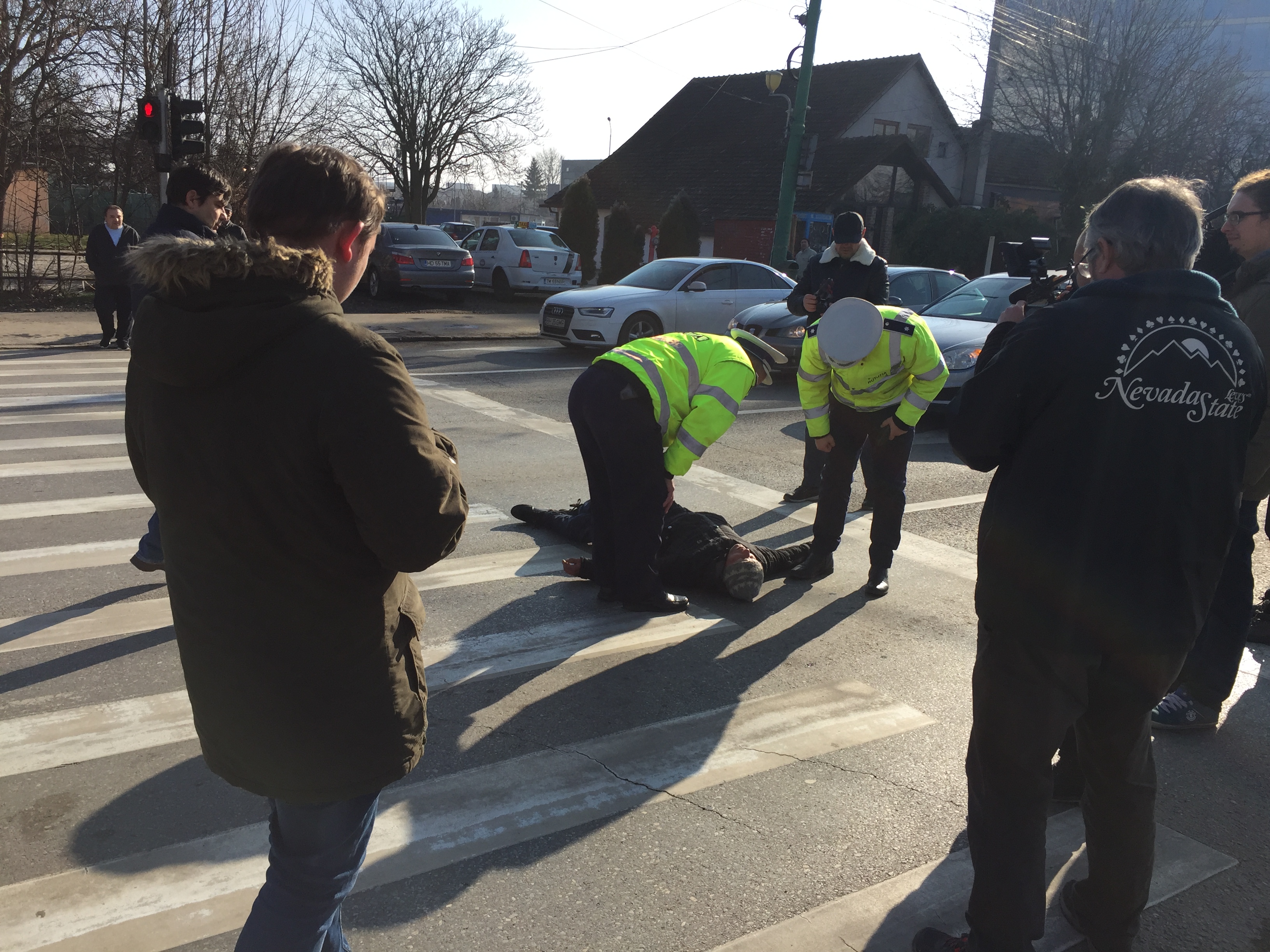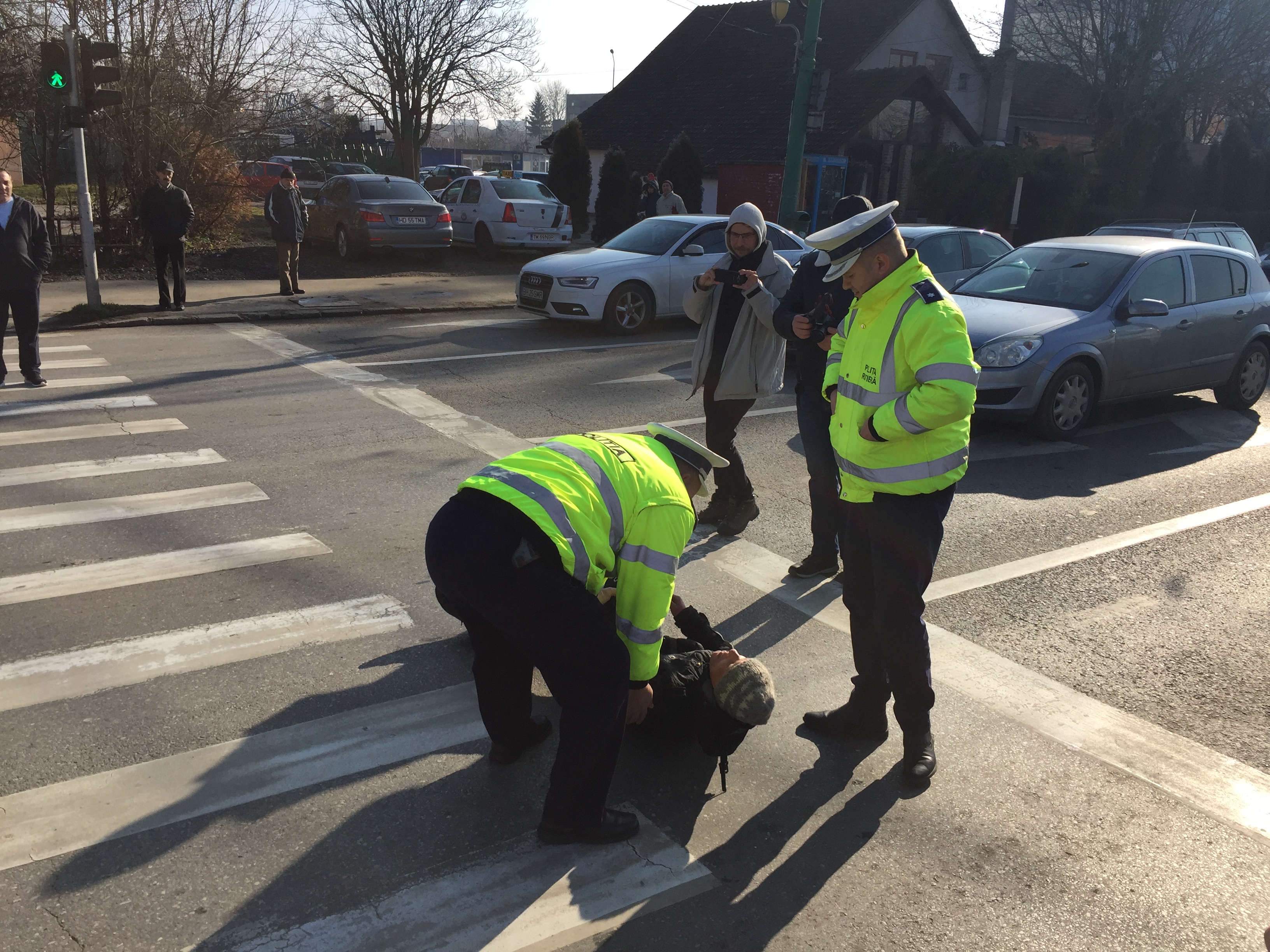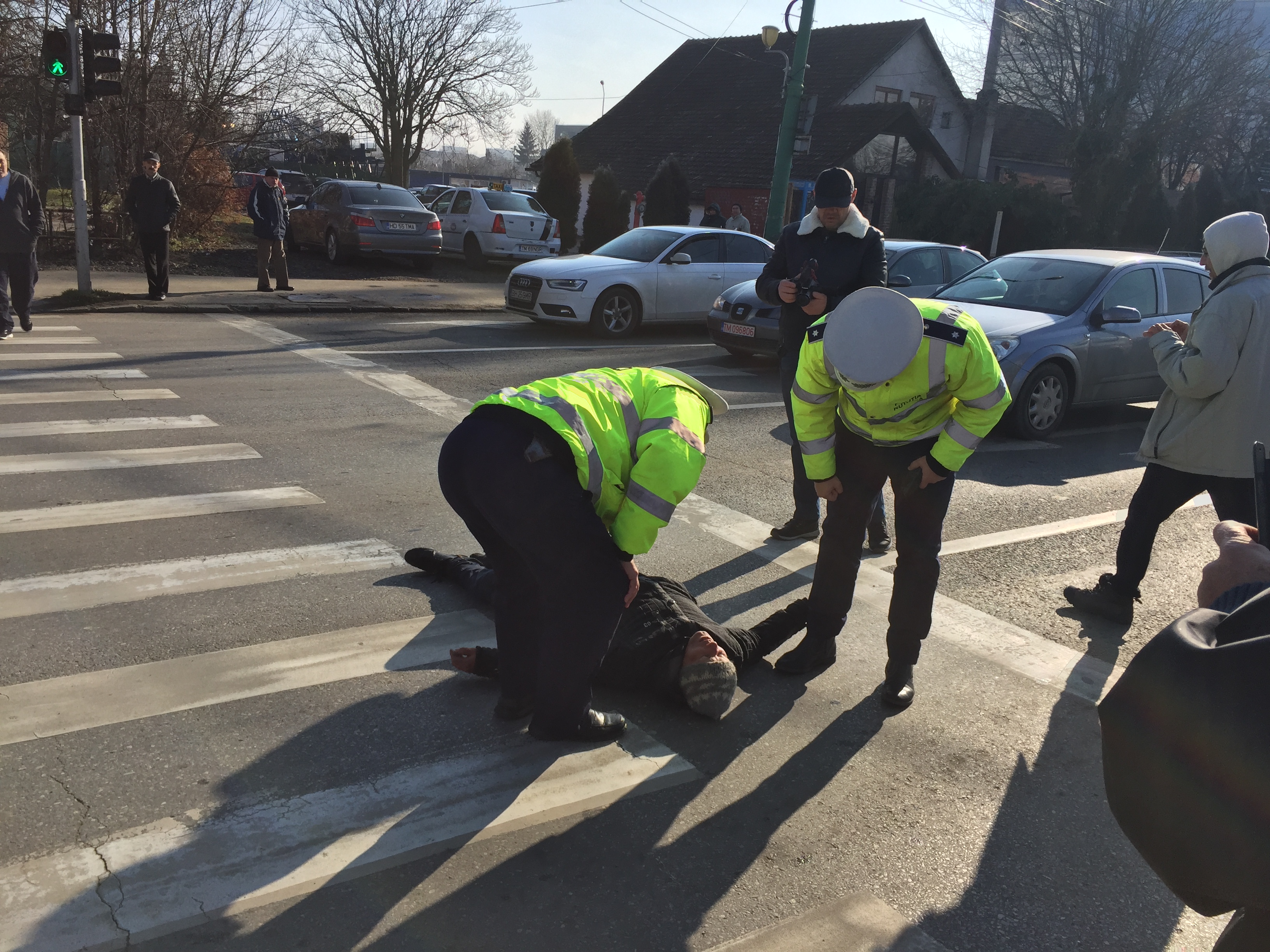 În apropierea protestului taximetriştilor, un om al străzii a lesinat pe o trece de pietoni în zona Circumvalaţiunii din Timişoara.
