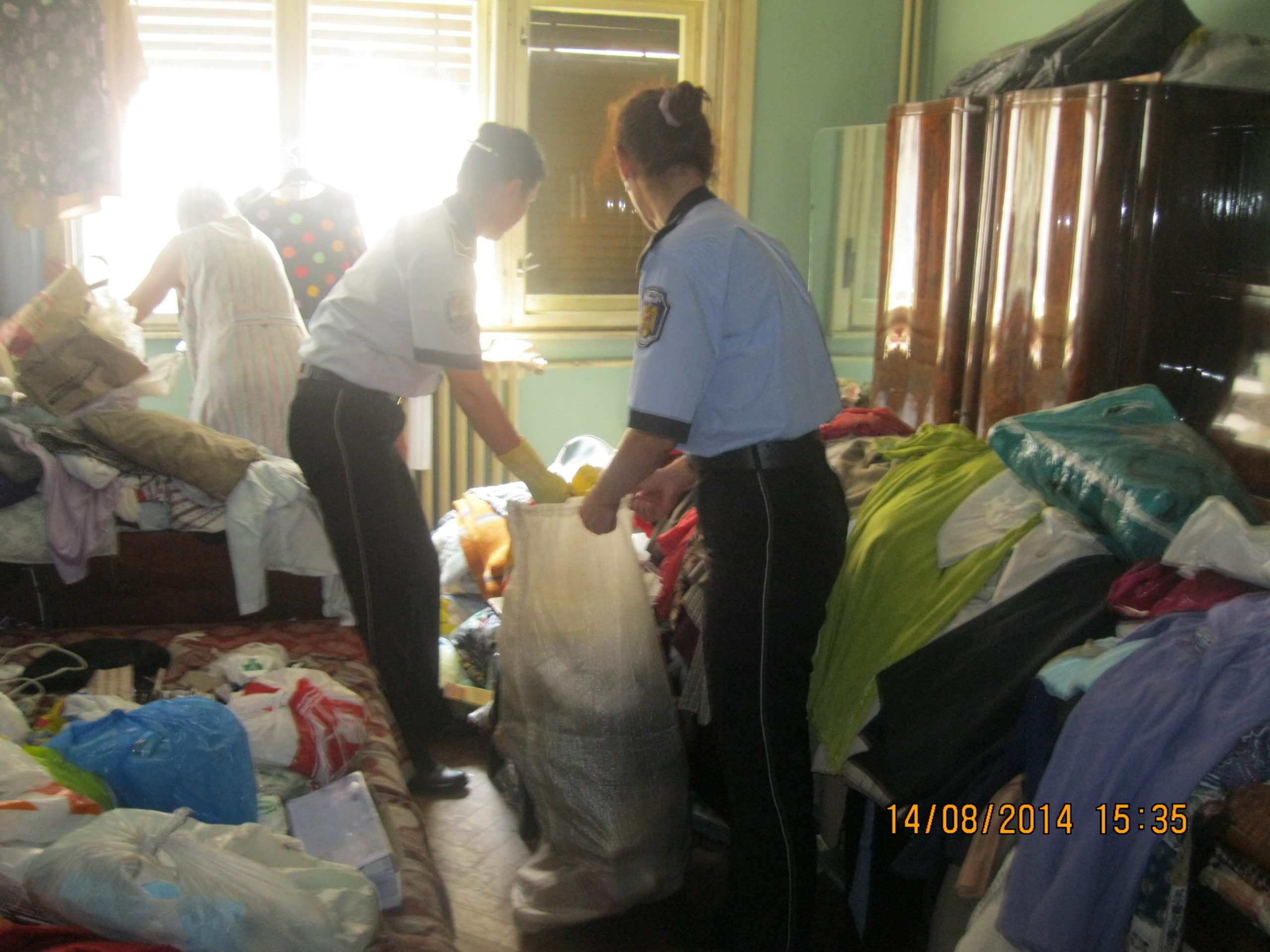 Polițiștii au constatat că persoana care locuiește în acest apartament are o vârstă înaintată, este bolnavă și nu are posibiliteatea să își igienizeze apartamentul. Drept urmare, localtarii împreună cu autoritățile au trecut la treabă și au adunat gunoaiele adunate în locuință. Oamenii au reușit să umple un container adus de societatea Retim.