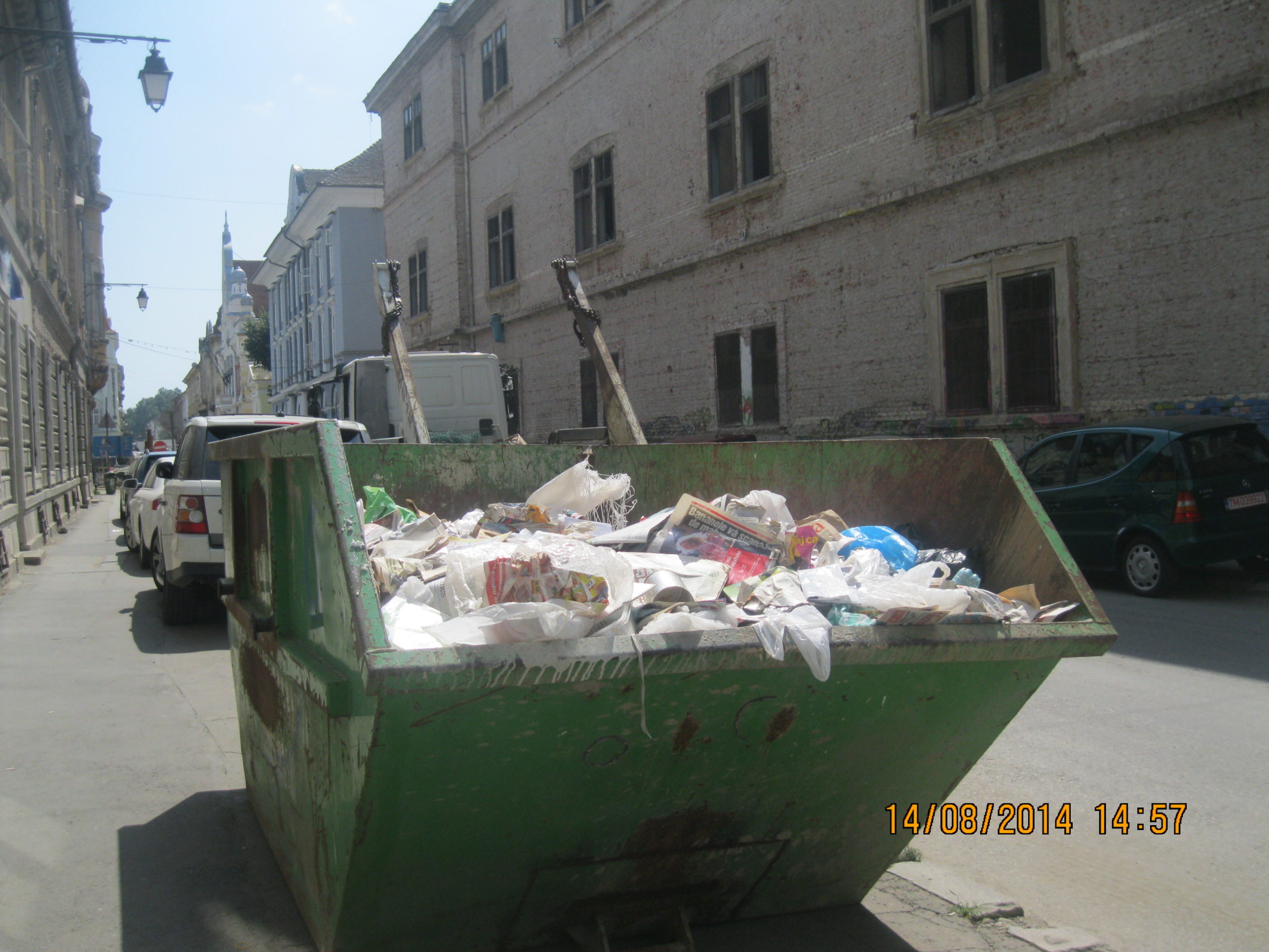 Polițiștii locali au reușit să strângă un container plin cu deșeuri din locuința unui timișorean, aflată în zona centrală a orașului.