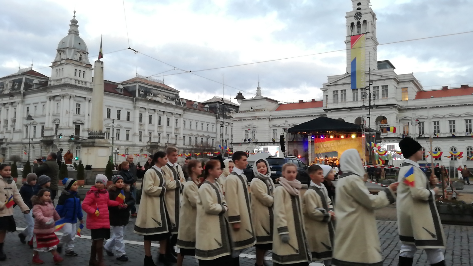 Aproximativ 1.000 de persoane au participat, sâmbătă seara, la o megaparadă a portului popular românesc din aproape toate localitățile județului Arad, în preambulul Zilei Naționale a României. Manifestarea a avut ca scop reconstituirea delegaţiilor care au participat la Marea Unire din anul 1918.